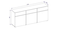 | Dimensions des éléments (en cm) | Meuble TV : L 179,9 x H 48,2 x P 40 - Buffet : L 179,9 x H 48,3 x P 40 - Buffet haut : L 119,4 x H 139 x P 40cm |