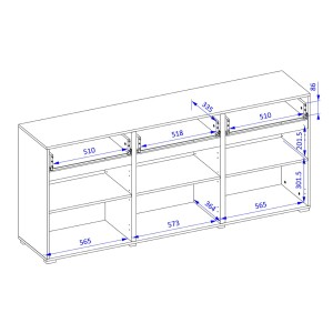 | Dimensions des éléments (en cm) | Meuble TV : L 179,9 x H 48,2 x P 40 - Buffet : L 179,9 x H 48,3 x P 40 - Buffet haut : L 119,4 x H 139 x P 40cm |