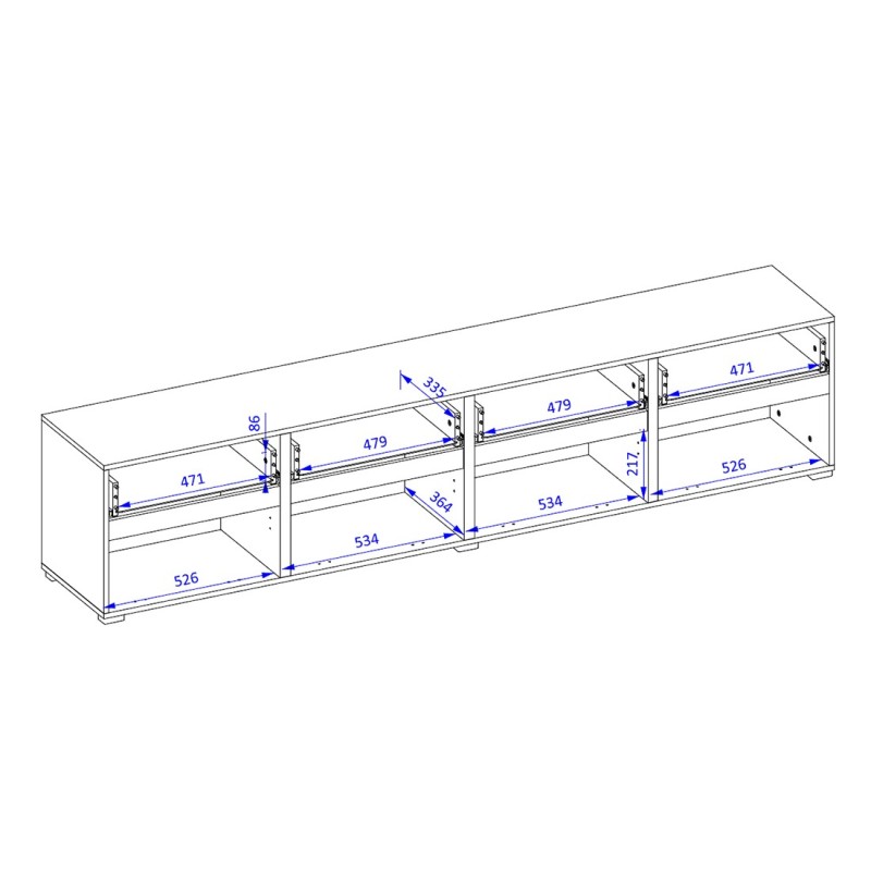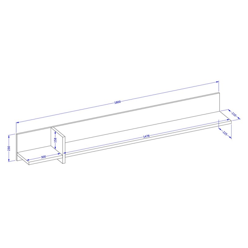 | Dimensions des éléments (en cm) | Meuble TV : 225x48x40 - Vitrine : 80x183x40 - Table basse : 120x48x60 - Étagère : 180x23x23 |