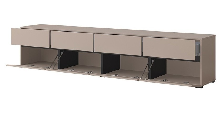 Le coloris beige, doux et tendance, s’associe au noir mat pour créer un contraste raffiné et actuel. Fabriqués en panneaux de particules de première qualité, les meubles HAVANA sont pensés pour durer, tout en facilitant l’entretien au quotidien. Ils sont dotés de finitions soignées, d’un système sans poignées et d’un design épuré idéal pour les intérieurs modernes.