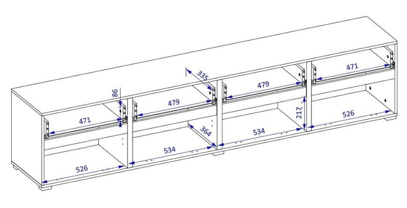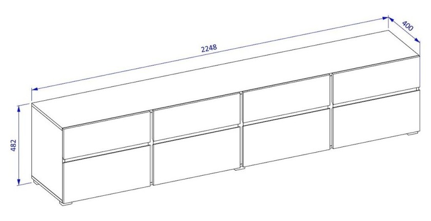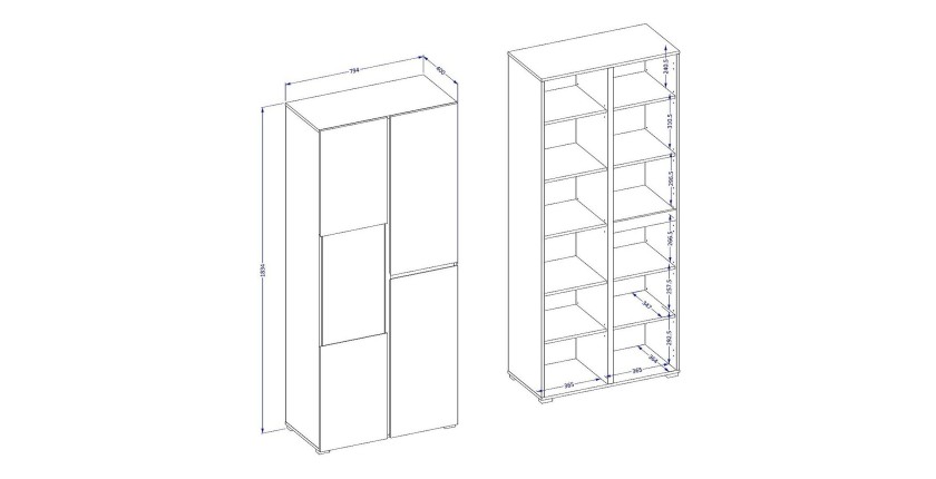 | Dimensions des éléments (en cm) | Meuble TV : 225x48x40 - Vitrine : 80x183x40 - Table basse : 120x48x60 - Étagère : 180x23x23 |