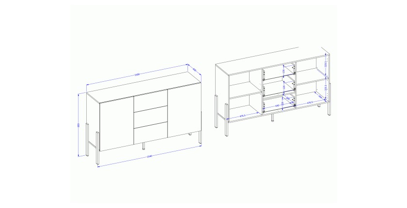 | Contenu du pack | buffet 4 portes, armoire et un buffet 2 portes et 3 tiroirs |