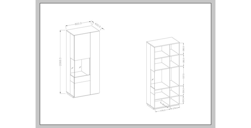 * Vitrine : L 80 x H 206,8 x P 40 cm