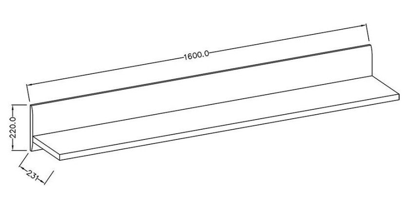 * Étagère : L 160 x H 22 x P 23,1 cm.