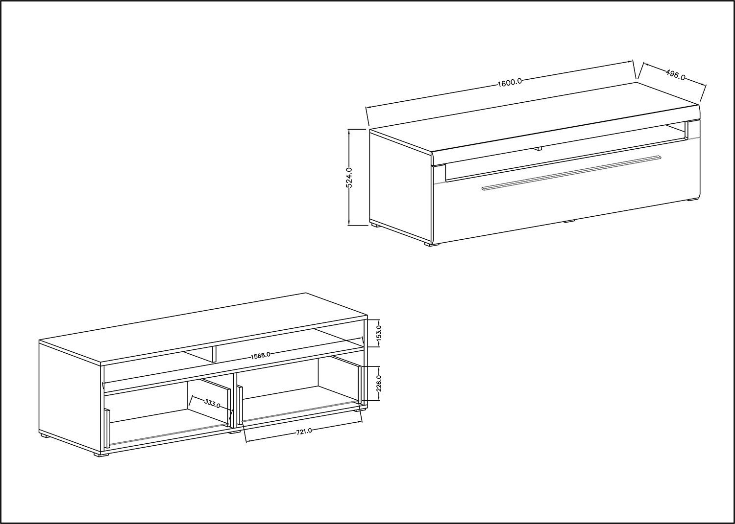 * Meuble TV : L 160 x H 52,4 x P 49,6 cm.