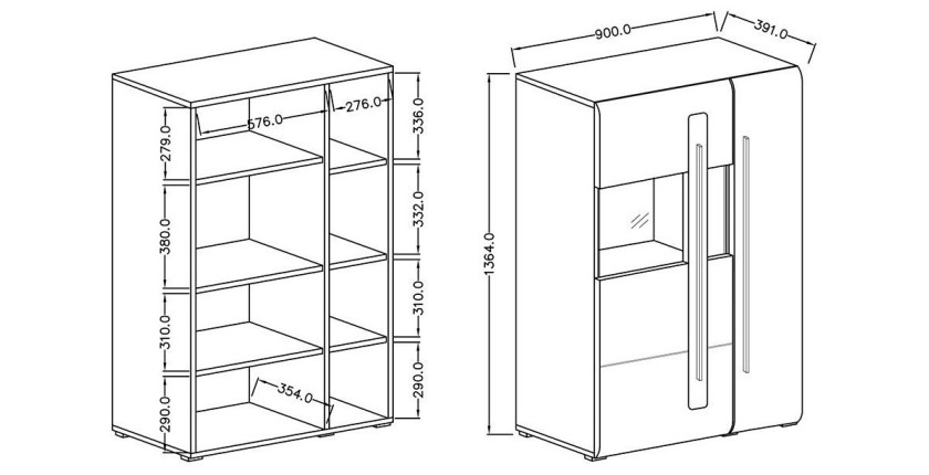 * Vitrine XL : Vitrine partiellement vitrée, Grand espace de rangement grâce à ses 2 portes et ses nombreuses étagères.