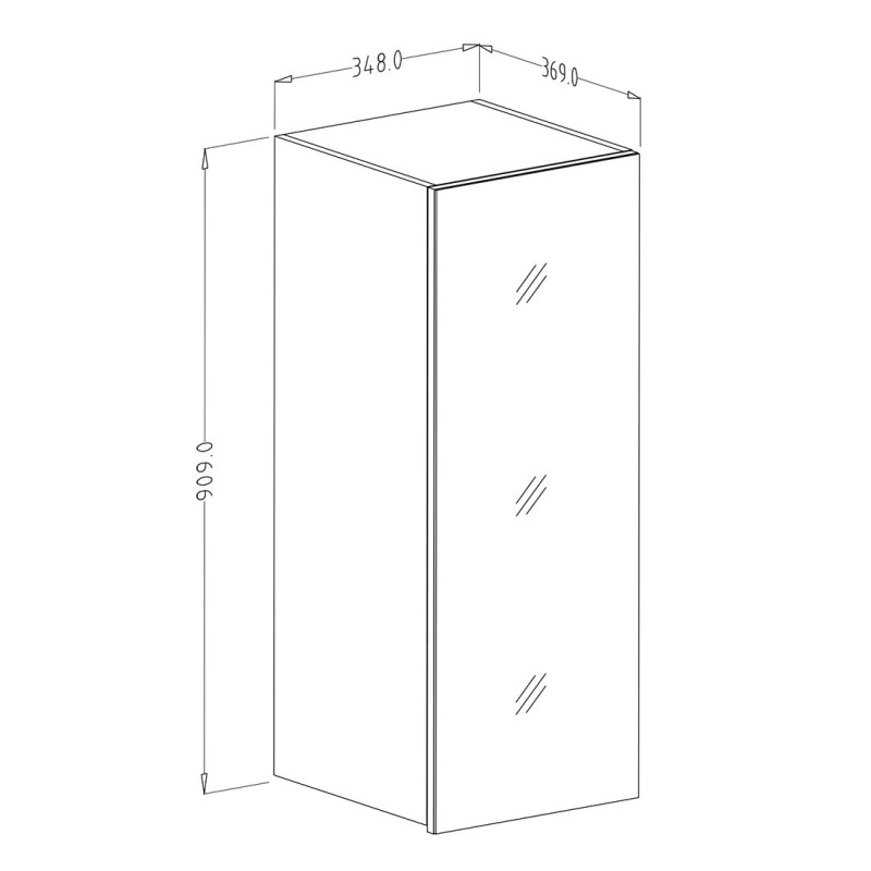 * Meuble suspendu porte pleine : L 34,8 x H 90,9 x P 36,9cm.