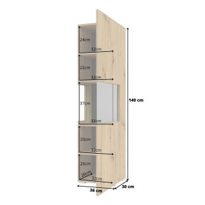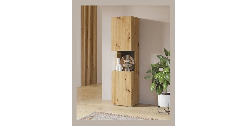 * Vitrine : Grand espace de rangement grâce à ses nombreuses étagères. Meuble composé d'une porte partiellement vitrée. Possibilité de configurer la porte avec ouverture vers la gauche ou vers la droite.