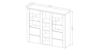 | Dimensions des éléments (en cm) | Vitrine ; 65,3x205,6x37,1 - Bufeft Haut : 100x145x37,1 - Vaisselier : 155x129,6x37,1 - Buffet : 176x85x37,1 - Étagère : 180x20x21 |
