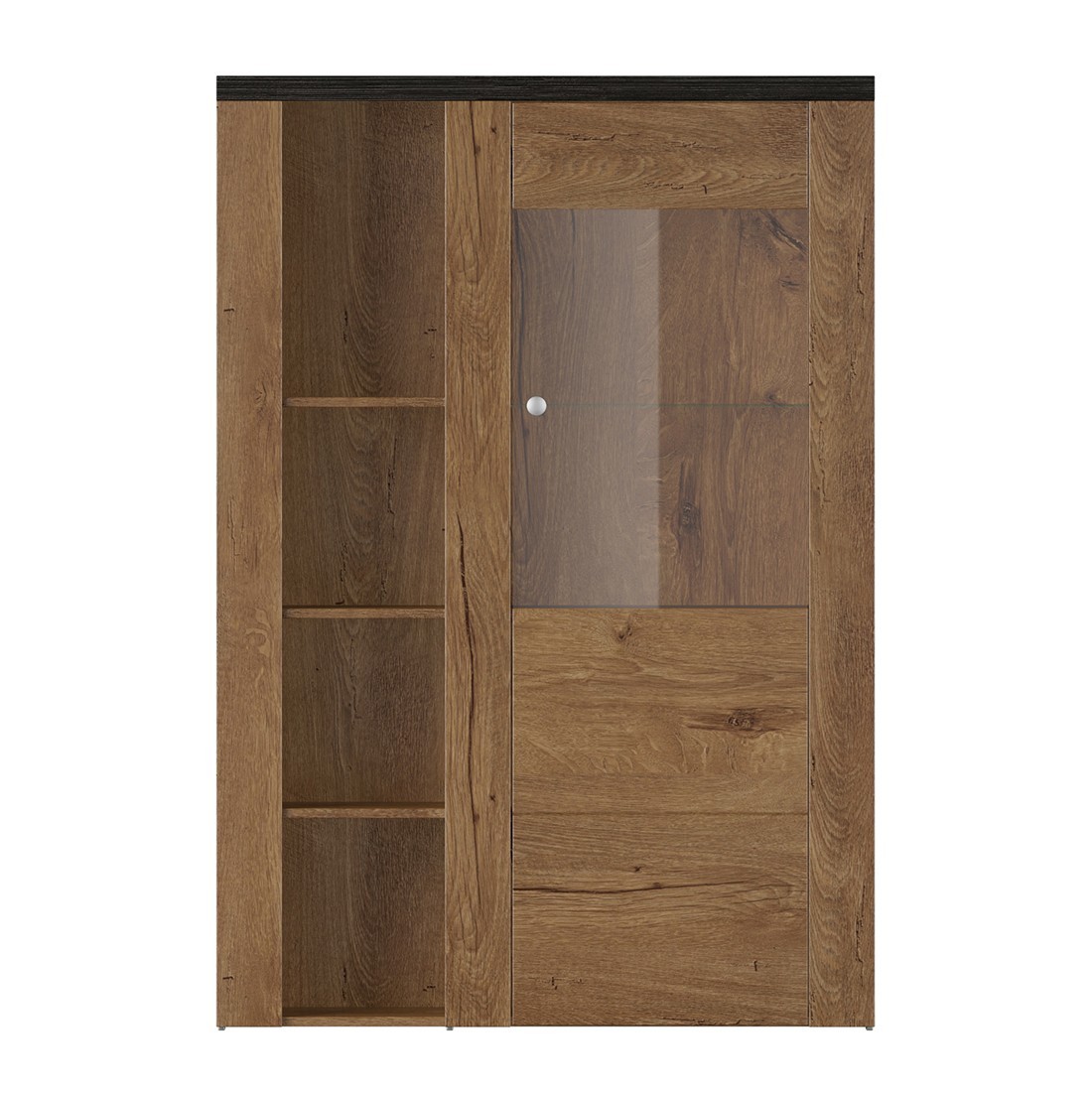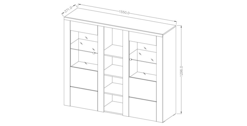 * Vitrine : Grand espace de rangement. Vitrine composée d'une grande porte battante partiellement vitrée. Éclairage LED intégré.