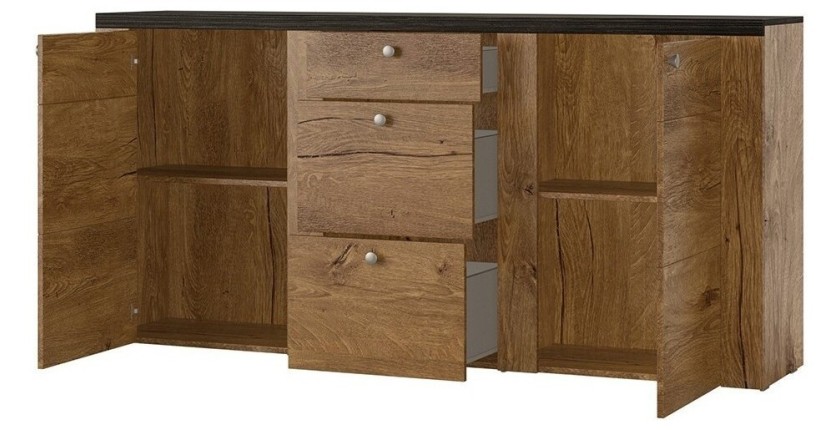- COLORIS : Meuble couleur chêne et noir effet bois.