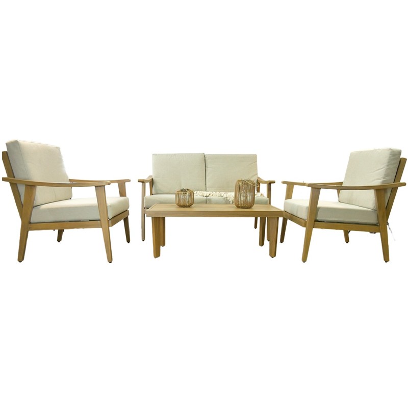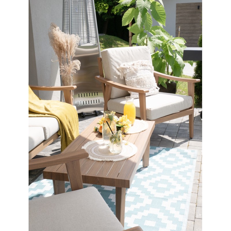 Apportez une touche naturelle et contemporaine à votre terrasse avec le salon de jardin ALBORA. Cet ensemble élégant 4 places comprend un canapé deux places, deux fauteuils confortables et une table basse rectangulaire, idéal pour créer un espace détente convivial dans votre jardin, sur votre terrasse ou votre balcon.