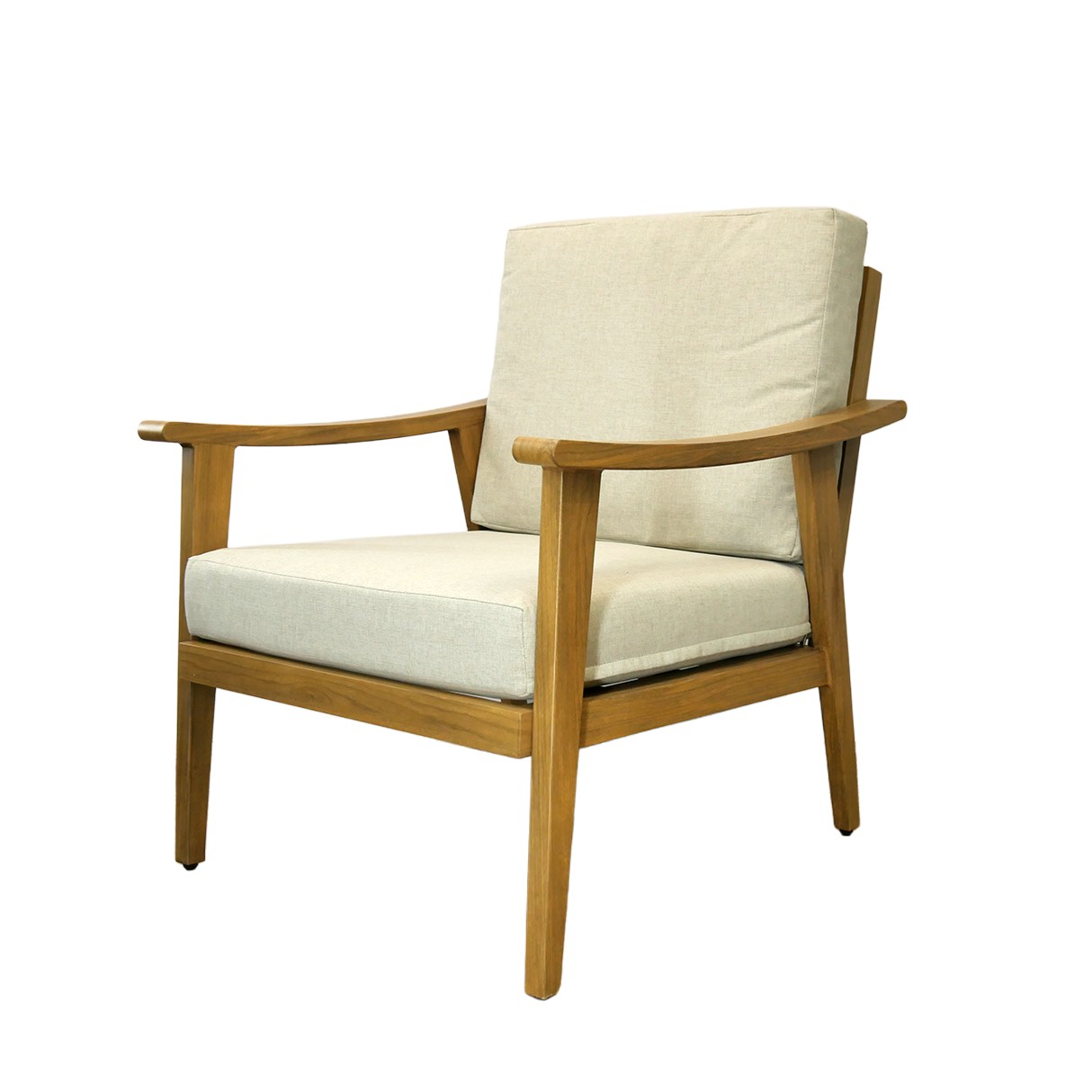 Les coussins épais de 10 cm offrent un confort optimal pour profiter pleinement de vos moments de détente en extérieur. Leur revêtement textile beige s’harmonise parfaitement avec la structure effet bois pour créer une ambiance chaleureuse et moderne.