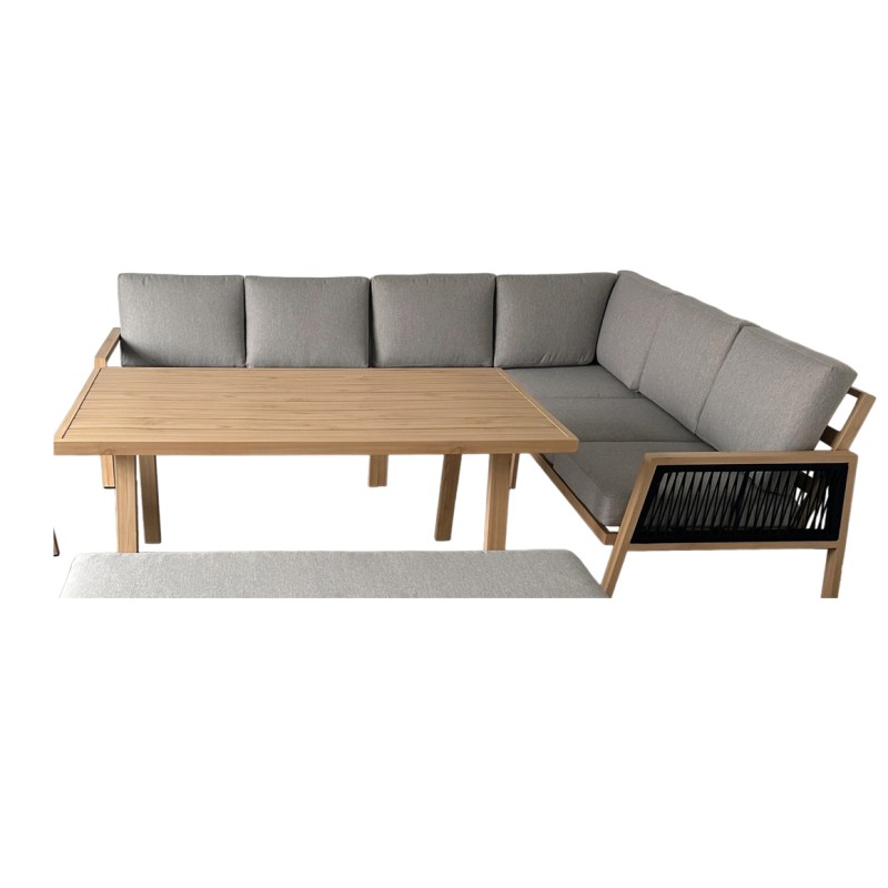 Les coussins gris en polyester Spunpoly apportent une assise confortable et un rendu visuel chic, tandis que la structure en aluminium assure une excellente tenue dans le temps. Facile à entretenir et résistant aux UV, ce salon de jardin conjugue esthétique, fonctionnalité et durabilité pour un usage extérieur durable.