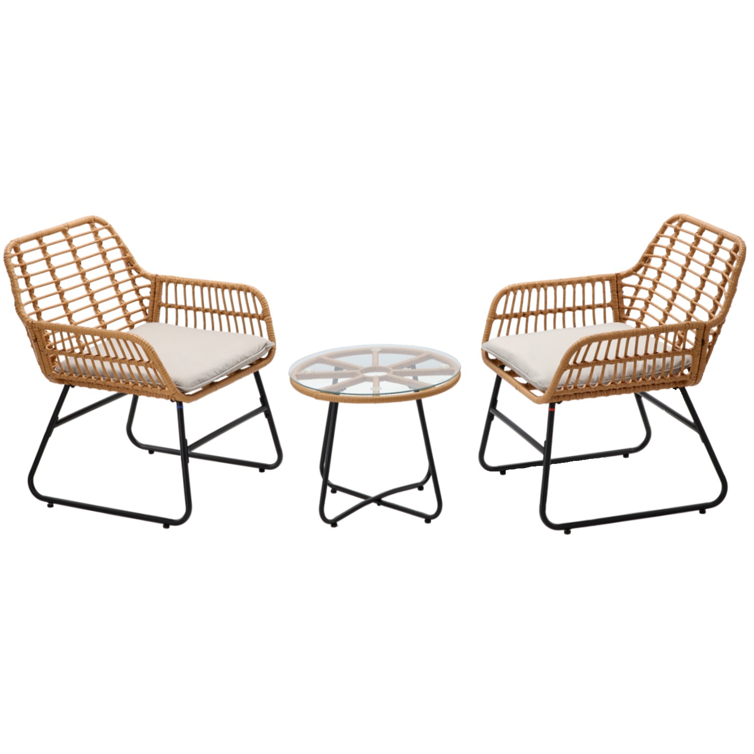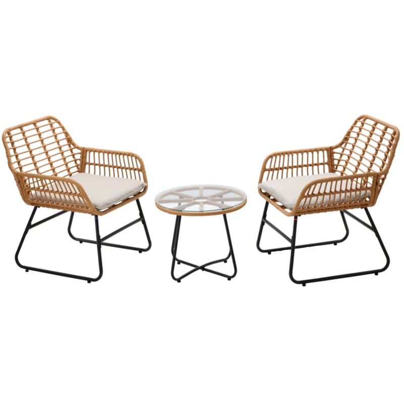 Les coussins épais en polyester offrent un confort optimal pour profiter de vos moments de détente, que ce soit pour un café ensoleillé ou une soirée relaxante. Compact et fonctionnel, ce salon de jardin est également facile à entretenir.