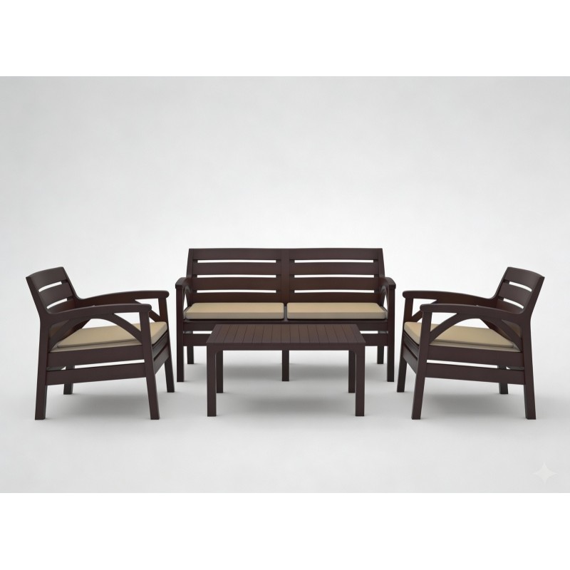 Sa structure en polypropylène de qualité assure une excellente résistance aux UV, à l’humidité et aux variations climatiques. Léger et robuste à la fois, cet ensemble est facile à déplacer tout en garantissant une bonne stabilité. Les coussins inclus apportent un confort supplémentaire et disposent de housses amovibles pour un entretien simplifié.