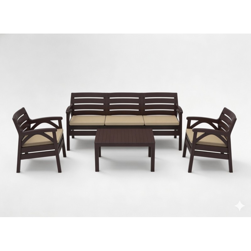 Son coloris marron associé à des coussins beiges apporte une touche naturelle et raffinée, parfaite pour s’intégrer harmonieusement dans tous les styles d’aménagement extérieur. Grâce à son canapé 3 places, ce salon de jardin offre une capacité d’accueil généreuse pour partager des instants privilégiés en famille ou entre amis.