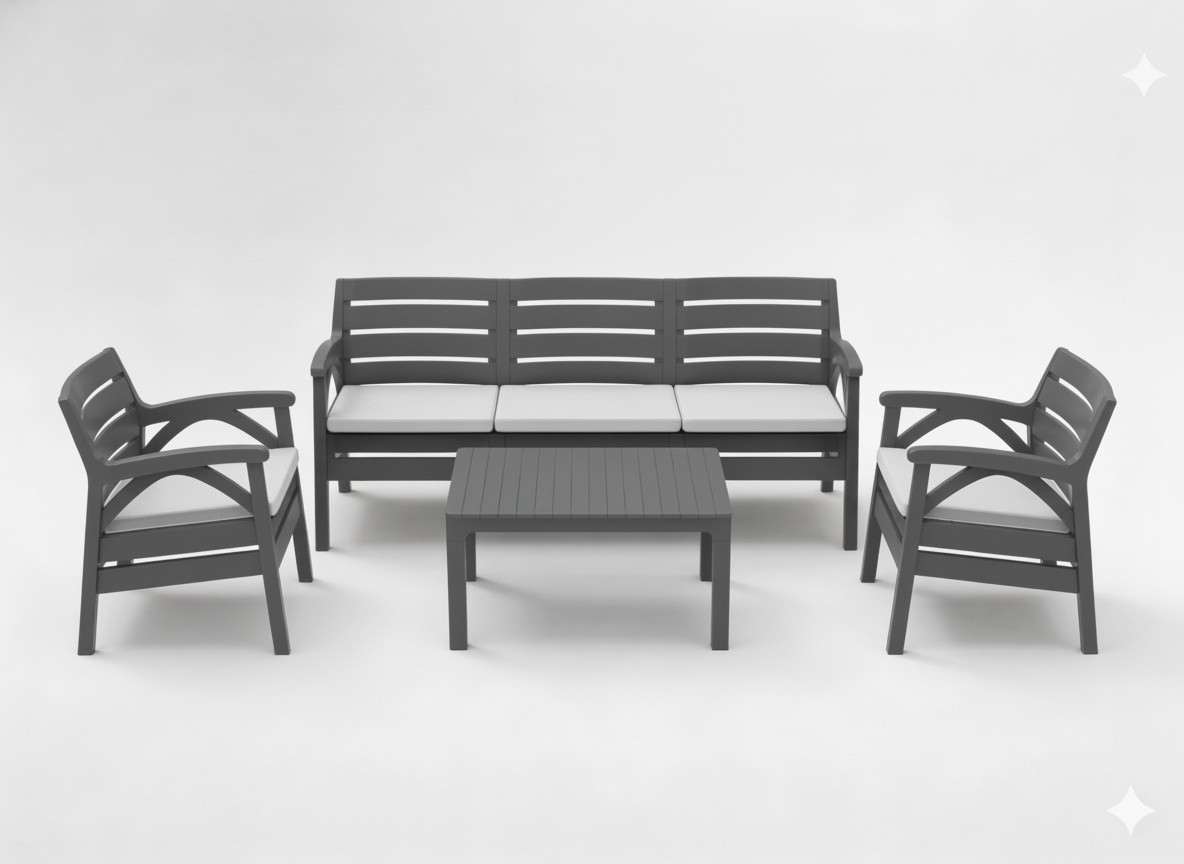 Fabriqué en polypropylène de haute qualité, ce mobilier est parfaitement adapté à une utilisation en extérieur. Il résiste efficacement aux intempéries, à l’humidité et aux rayons UV, garantissant ainsi une excellente durabilité dans le temps. Léger mais robuste, il est facile à déplacer et à installer selon vos besoins.