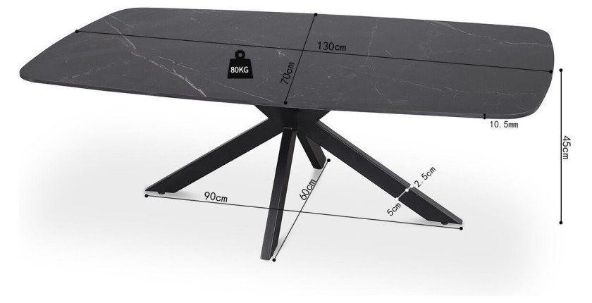 Grâce à ses dimensions généreuses de 130 x 70 cm et sa hauteur de 45 cm, cette table basse rectangulaire offre une surface confortable pour exposer vos objets déco, recevoir ou tout simplement sublimer l’agencement de votre salon contemporain.