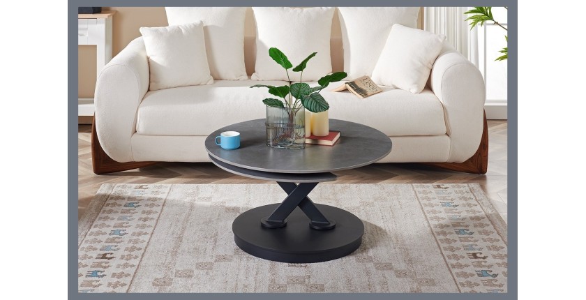 La table basse VIRELLO incarne l’alliance parfaite entre matières nobles et design sophistiqué. Avec son plateau rond en pierre naturelle gris clair et sa base en métal noir, elle s’impose comme une pièce forte dans un salon haut de gamme au style contemporain ou industriel chic.