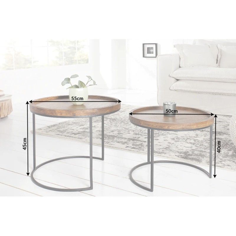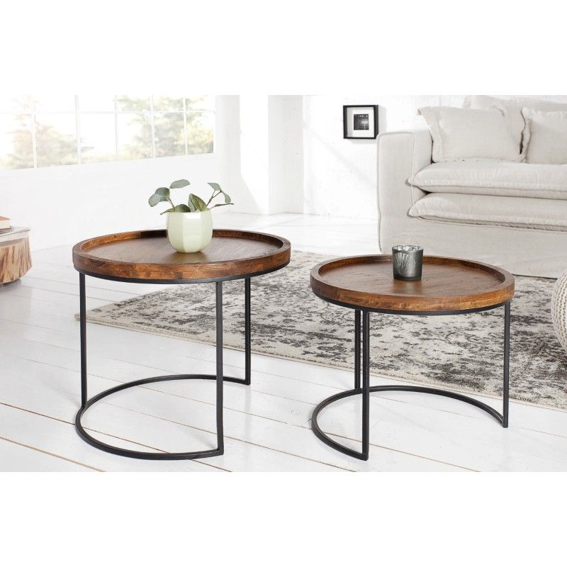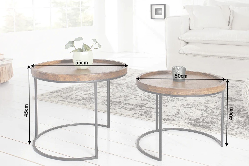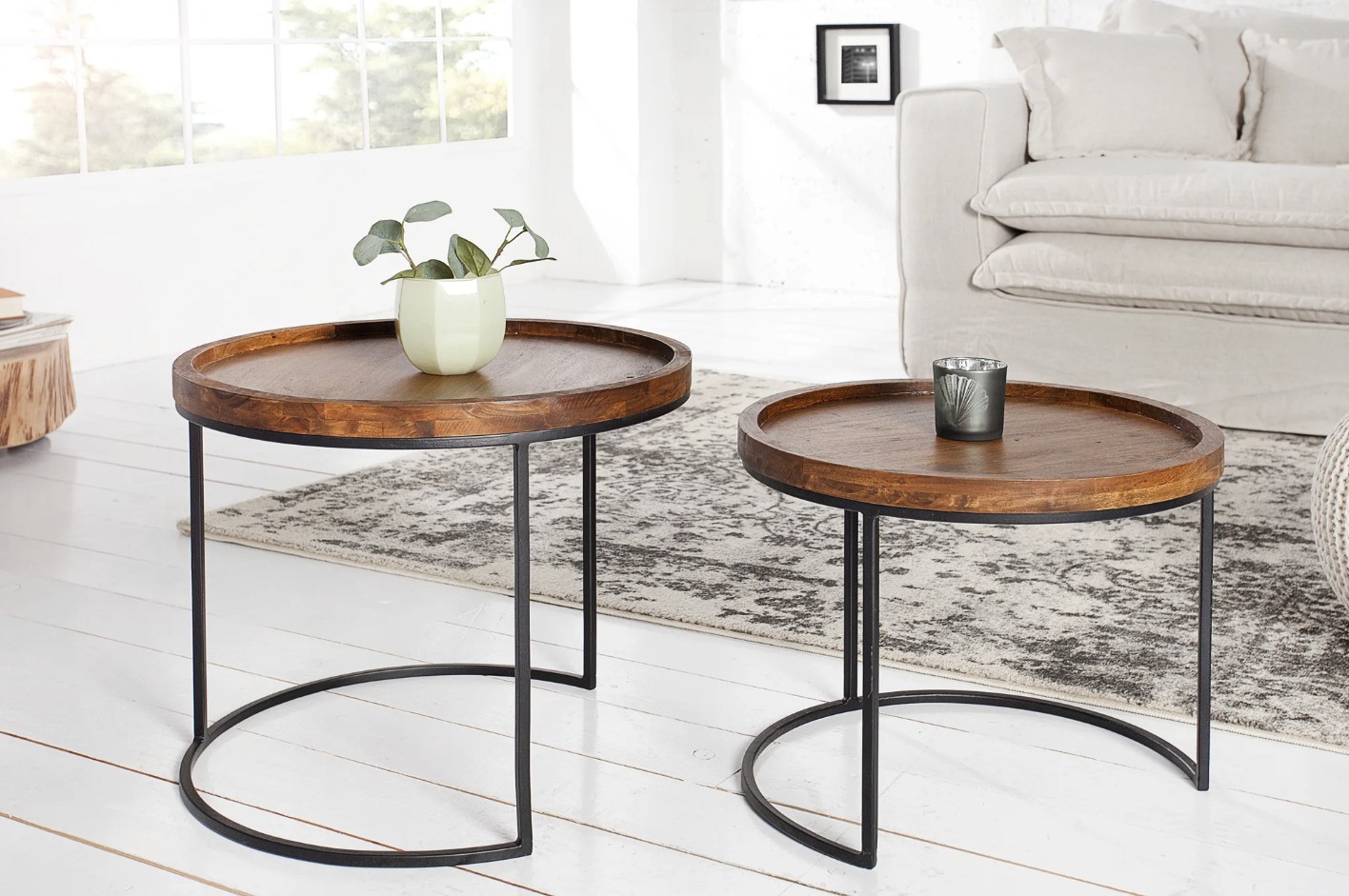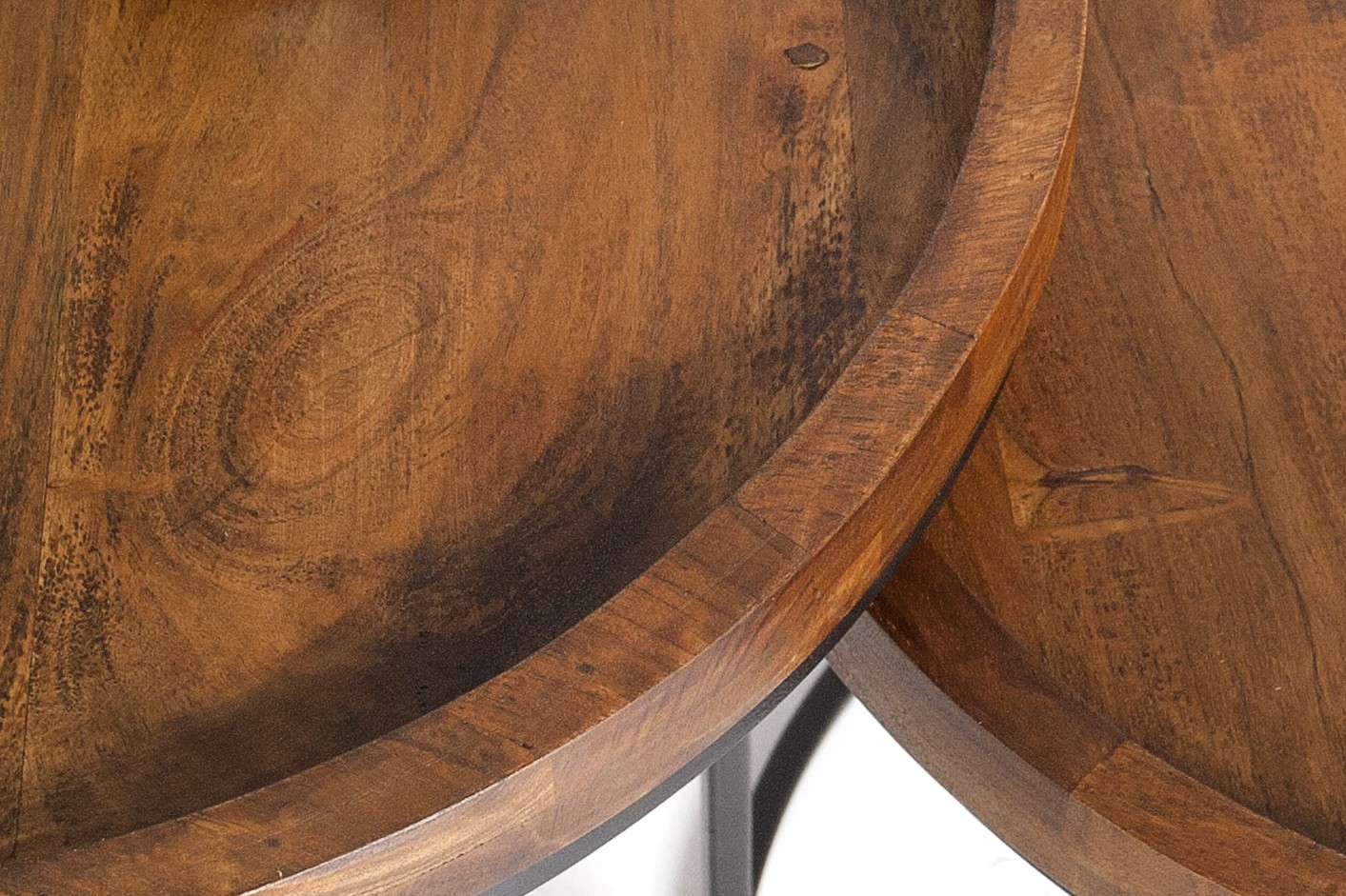 Les tables basses gigognes ORBO séduisent par leur design moderne et leur conception pratique. Composé de deux tables rondes, cet ensemble permet de moduler l’espace selon vos besoins, tout en apportant une touche chaleureuse grâce au bois massif d’acacia.