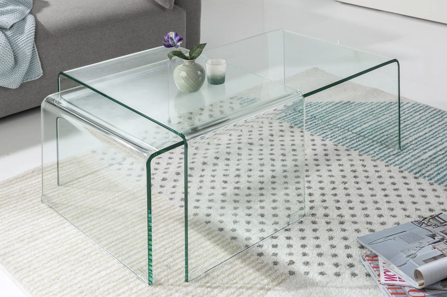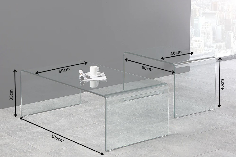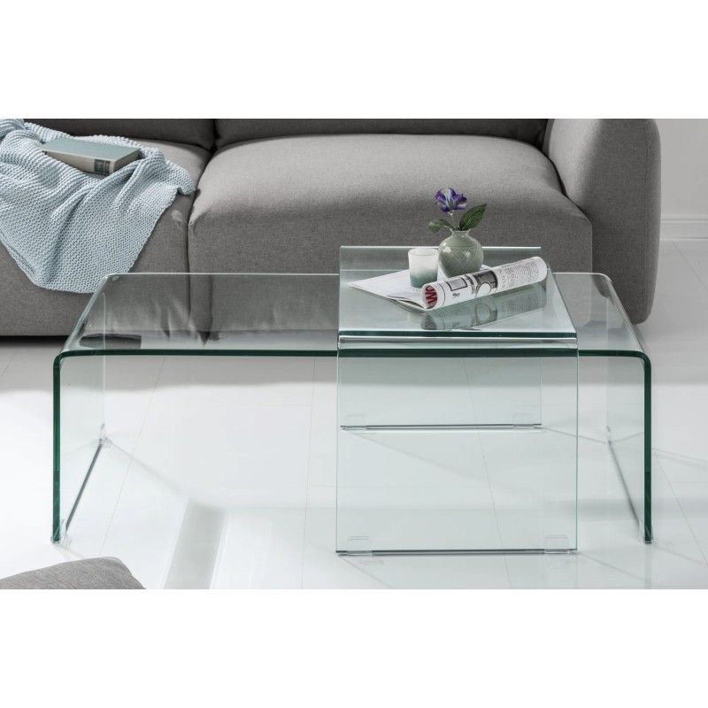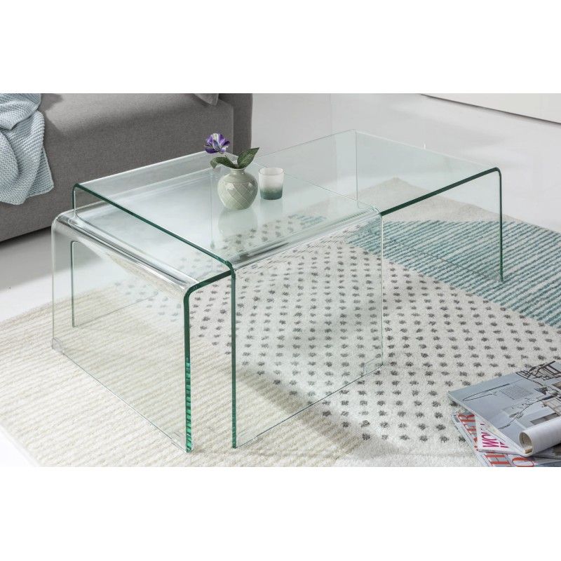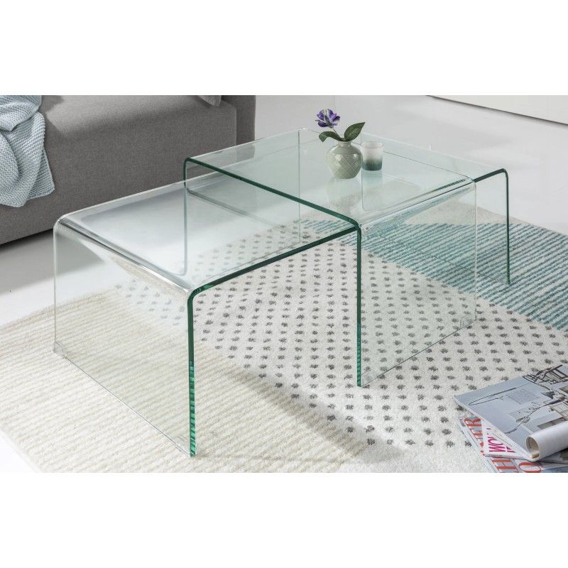 Entièrement conçues en verre trempé transparent, ces tables basses allient robustesse et raffinement. Leur conception empilable permet d’optimiser l’espace selon vos besoins, tandis que l’aspect verre total met en valeur la lumière et les volumes de la pièce, pour un rendu résolument contemporain.