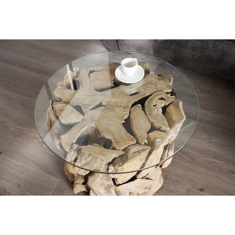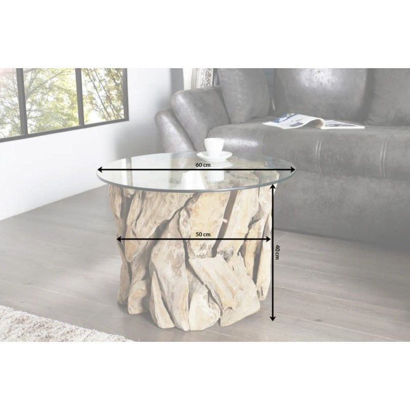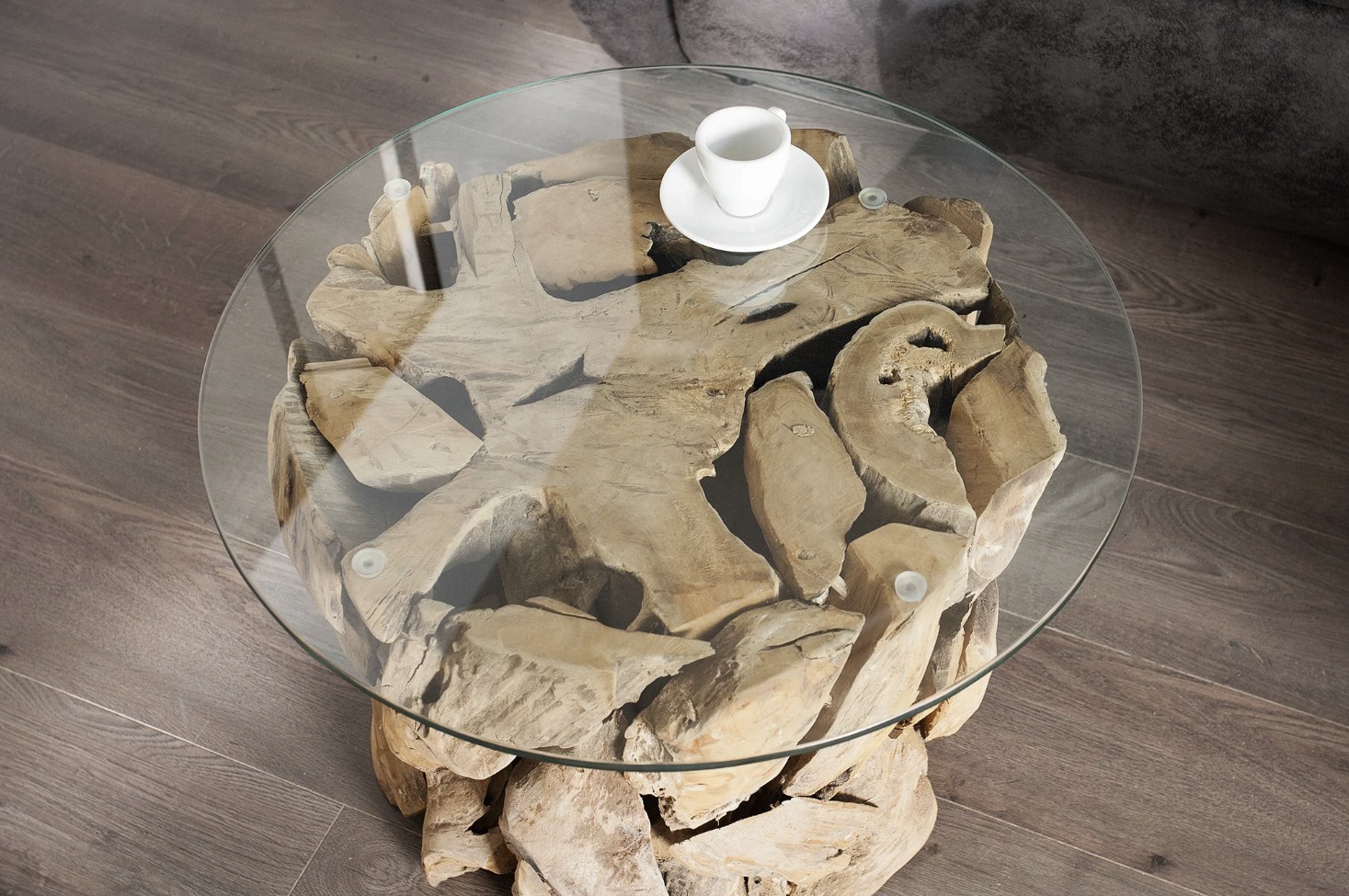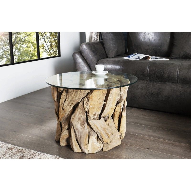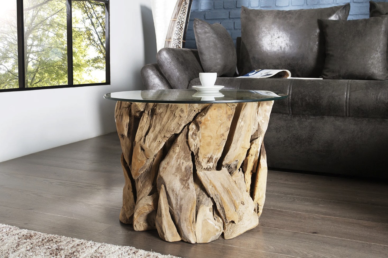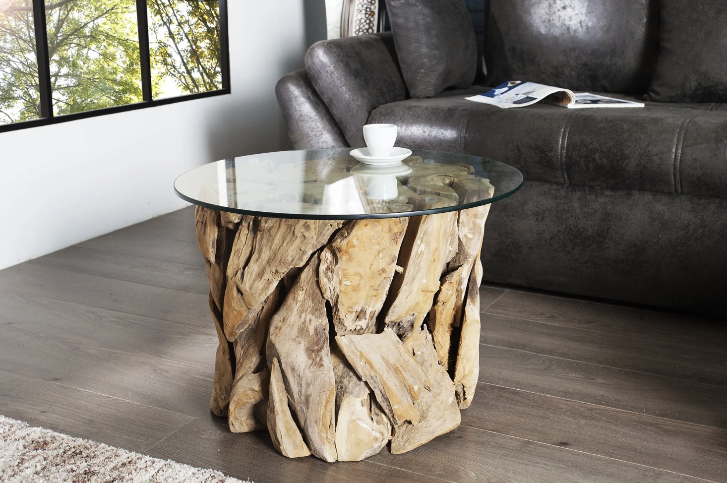 La table basse ARBOREA séduit par son style campagne chic et son pied central en bois flotté au caractère unique. Associée à un plateau rond en verre trempé, elle apporte une touche naturelle et élégante à votre espace de vie tout en conservant une belle légèreté visuelle.
