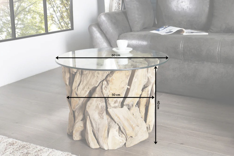 La table basse ARBOREA 70 cm de diamètre incarne parfaitement l’esprit campagne chic grâce à son pied central en bois flotté et son plateau rond en verre trempé. Son design organique et élégant en fait un élément décoratif fort, idéal pour créer une ambiance chaleureuse et naturelle dans votre salon.