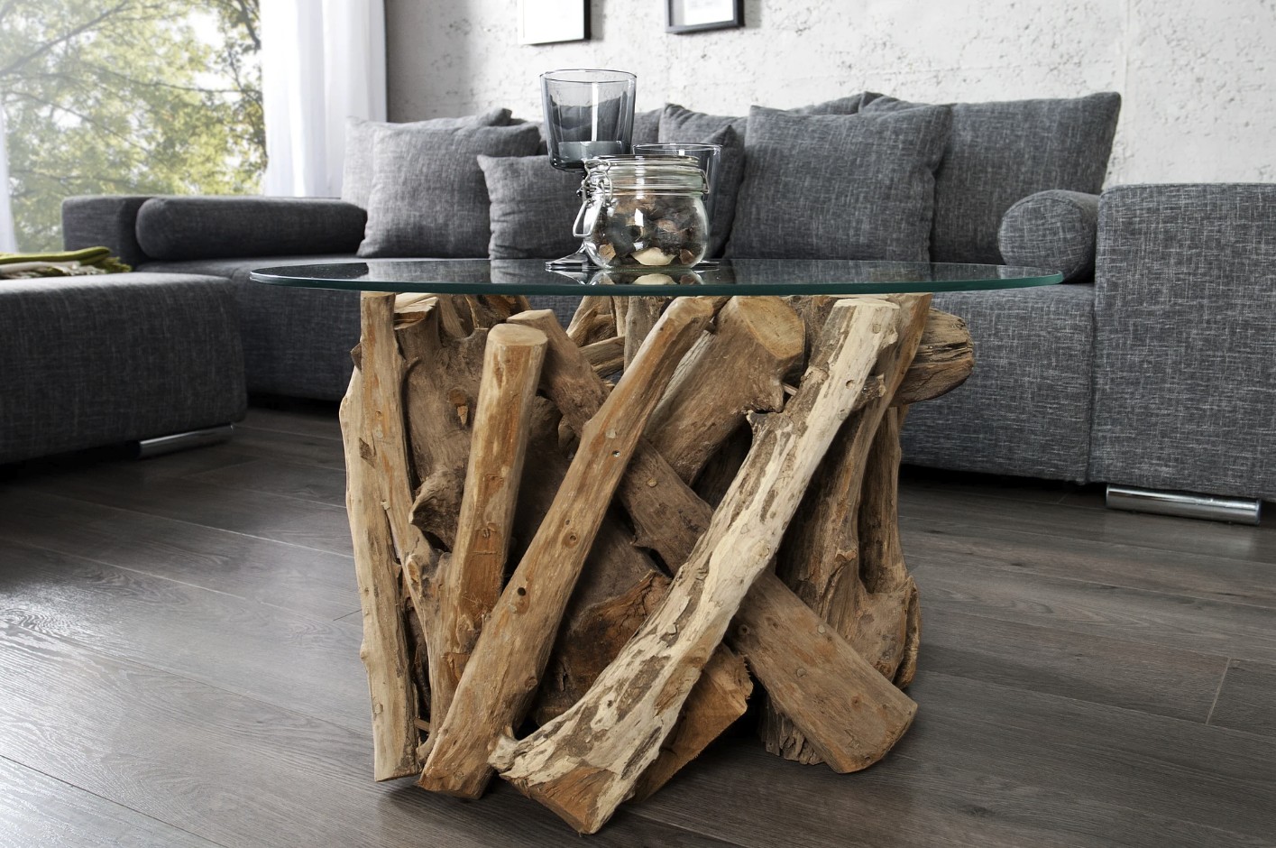 La table basse ARBOREA 70 cm associe un pied central en bois de teck massif à un plateau rond en verre trempé. Son design organique et authentique en fait une pièce forte du salon, idéale pour créer une atmosphère chaleureuse et naturelle dans un intérieur au style campagne ou contemporain doux.