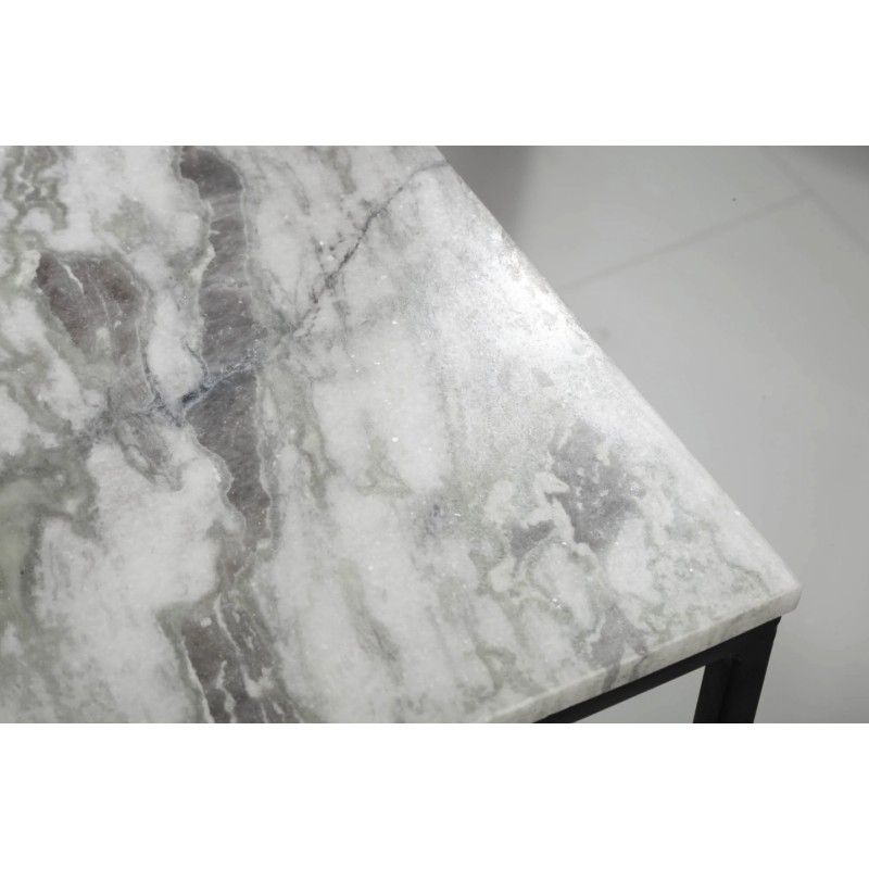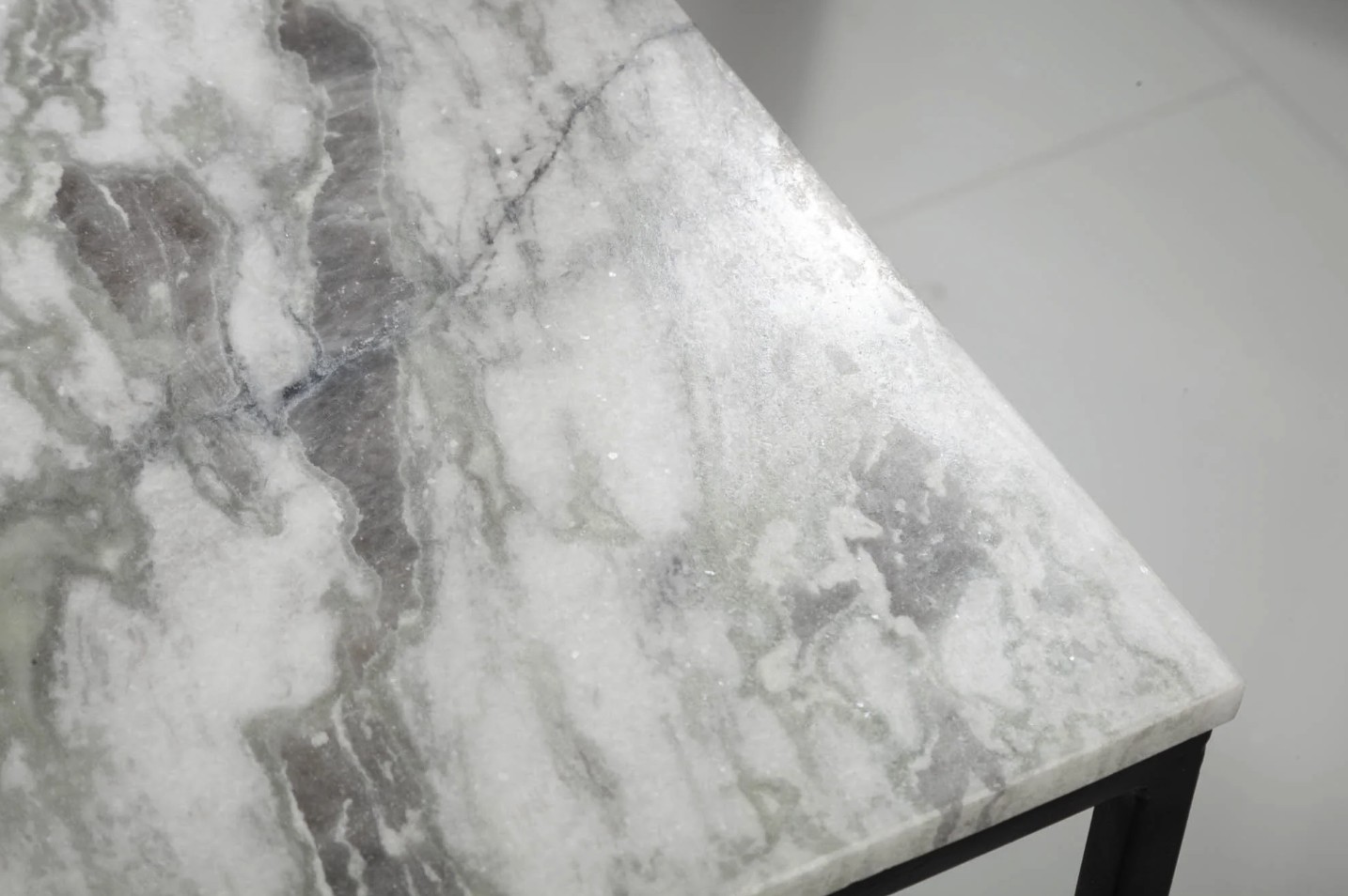 La table repose sur une structure en métal pensée pour assurer stabilité et longévité. Les pieds sobres soulignent la légèreté visuelle du plateau en marbre tout en garantissant une base solide et équilibrée.