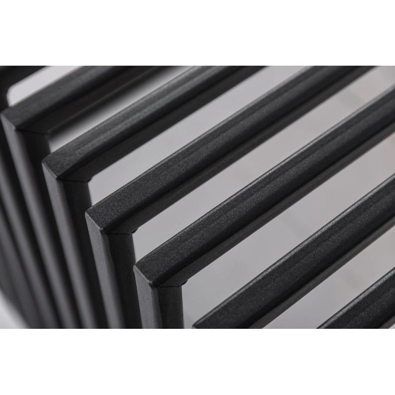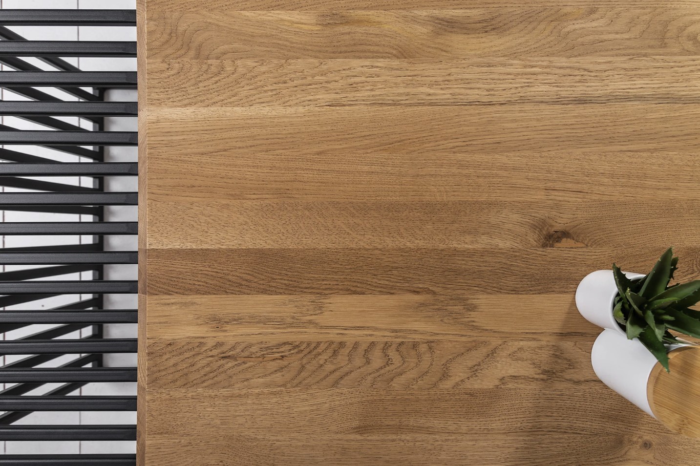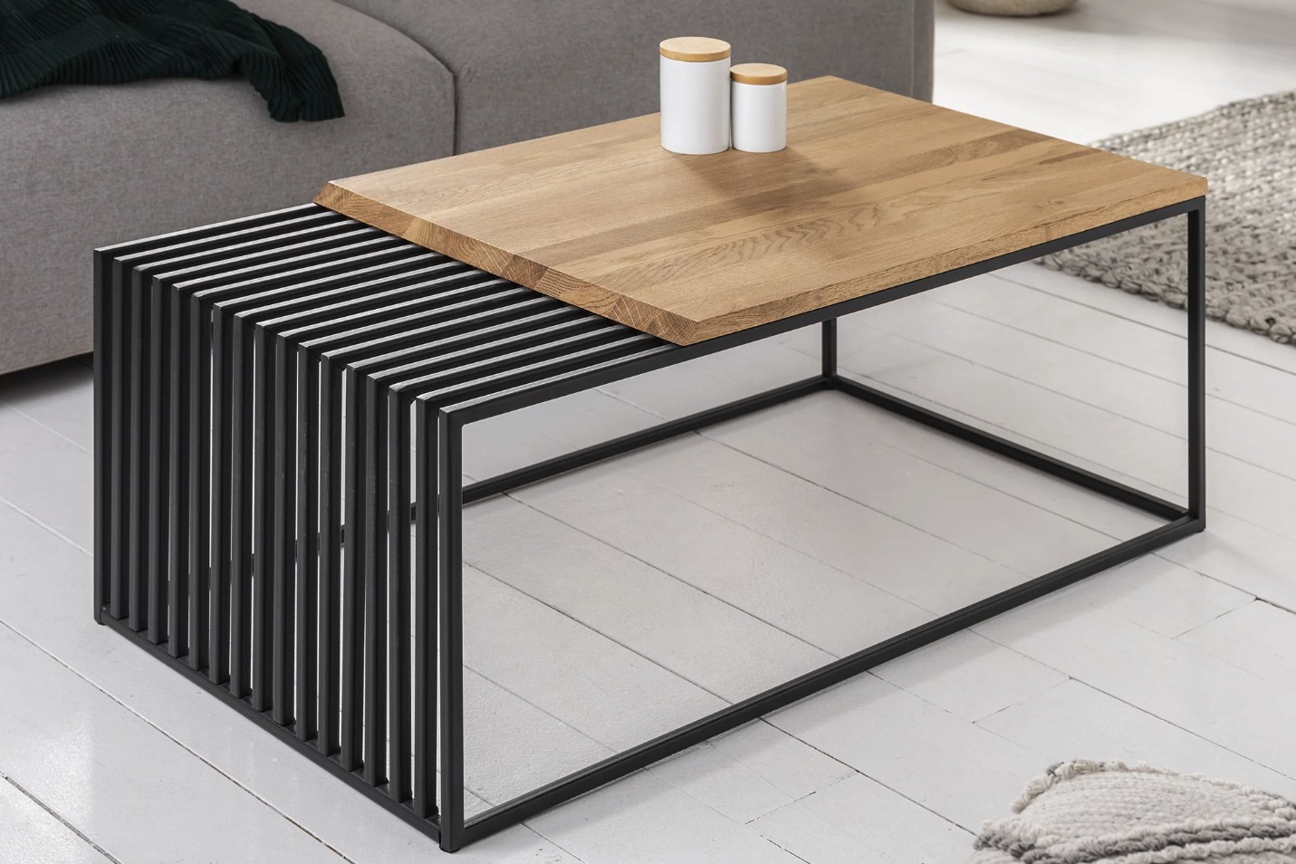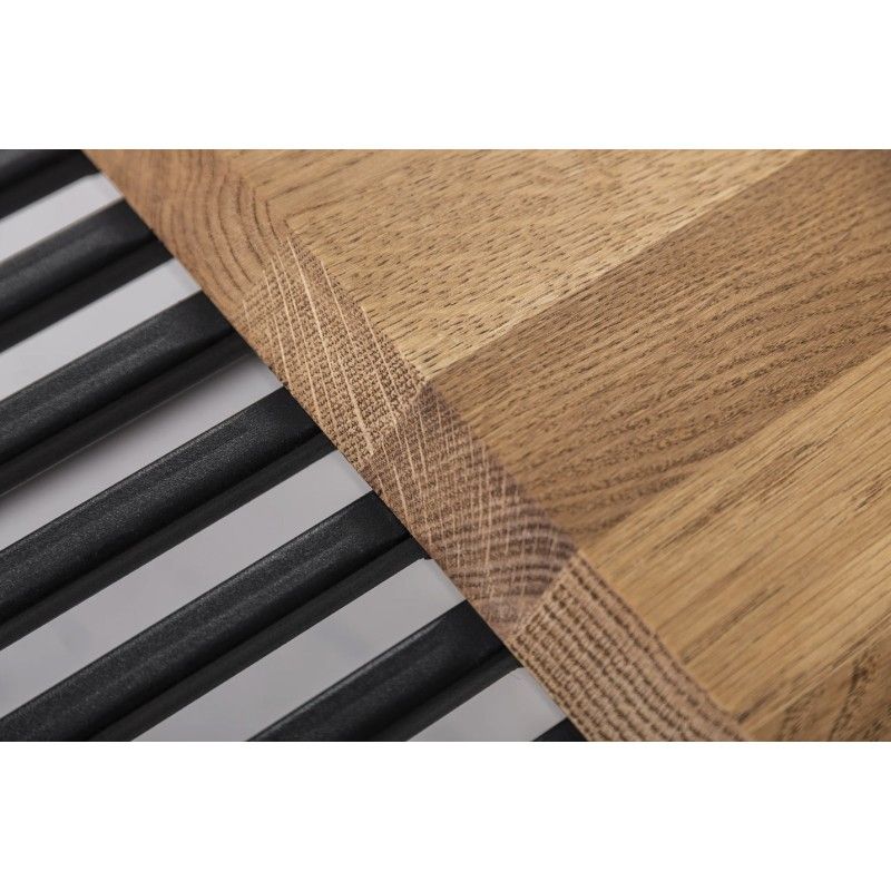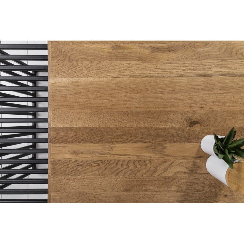 Le chêne, sélectionné pour sa solidité et son aspect vivant, apporte une touche organique qui contraste élégamment avec la modernité du métal.