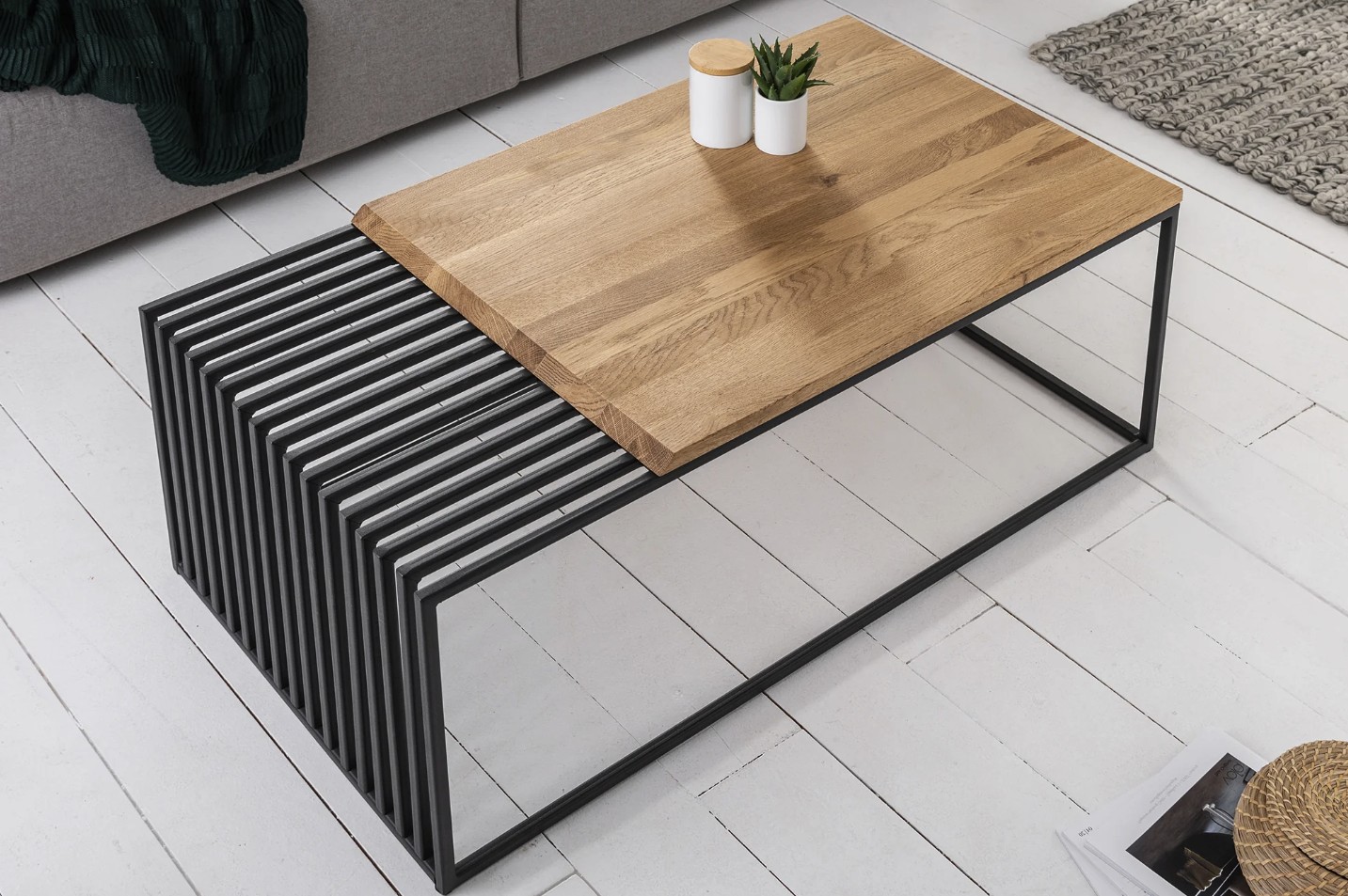 La table basse ABITTA se distingue par un design audacieux mêlant bois de chêne huilé et métal ajouré. Pensée pour les intérieurs modernes et structurés, elle apporte une vraie signature décorative au salon grâce à son plateau mixte et ses lignes équilibrées.