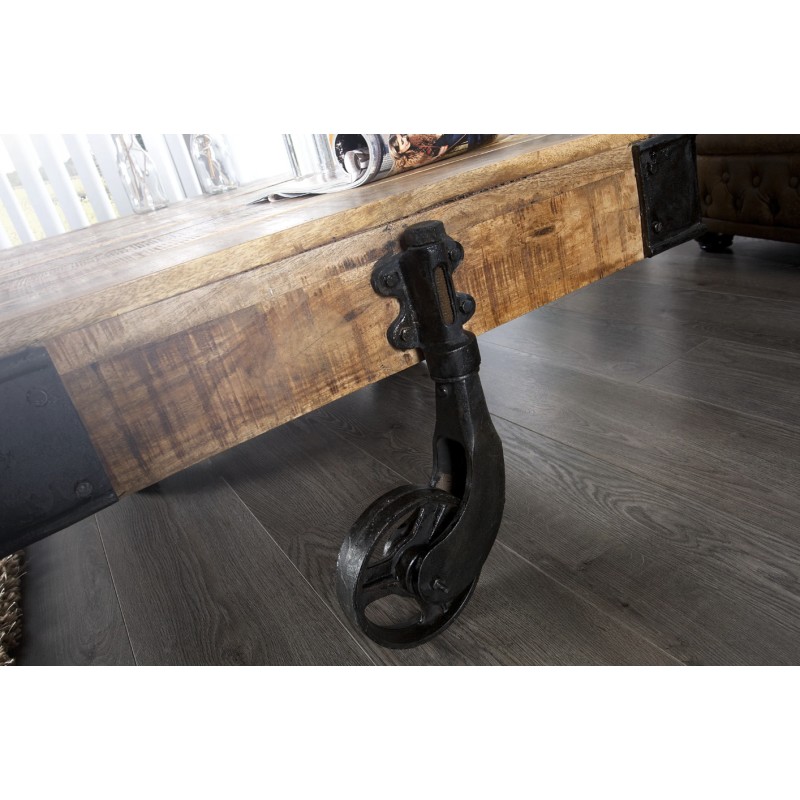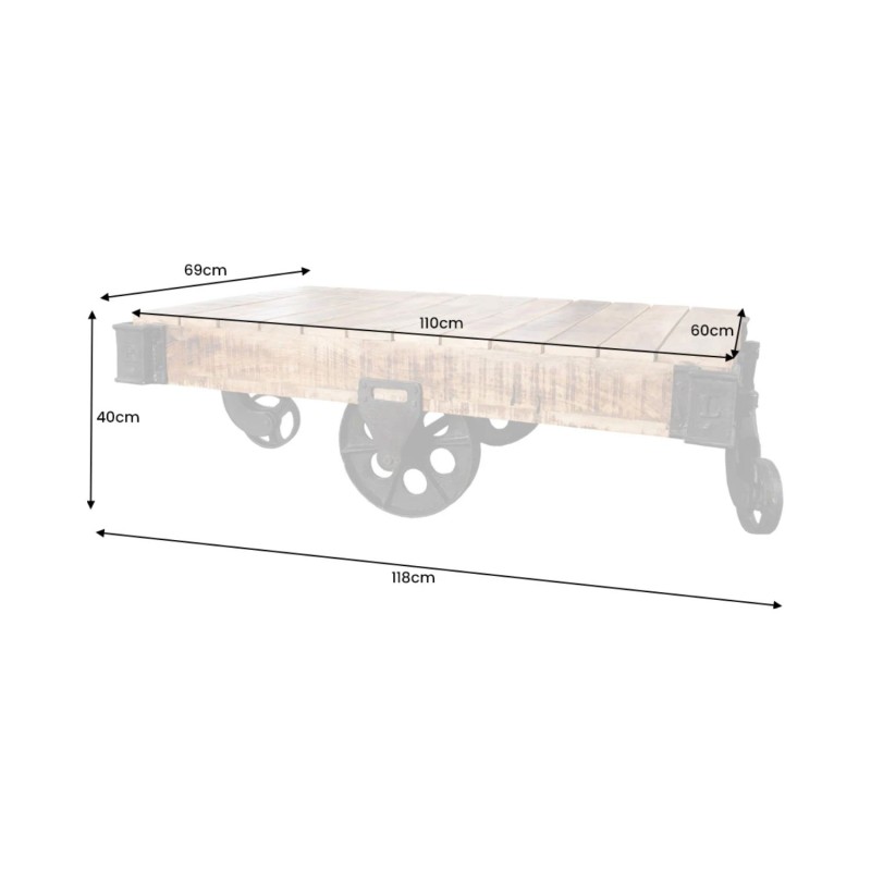 La table basse RAIL incarne parfaitement l’esprit industriel avec son design inspiré des anciens wagonnets d’atelier. Son association de bois de manguier massif et de métal noir lui confère une allure brute et pleine de personnalité, idéale pour un salon au style loft ou atelier.