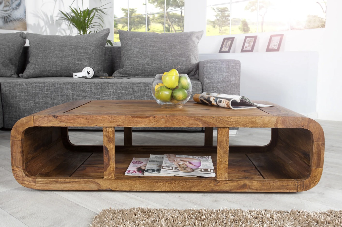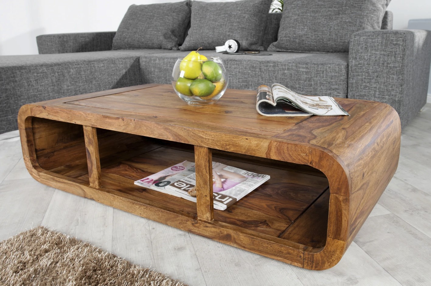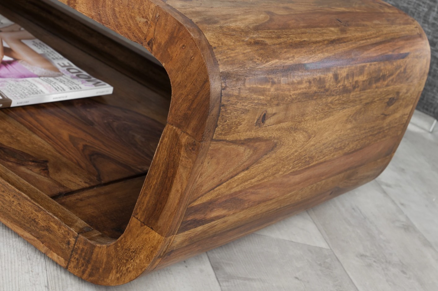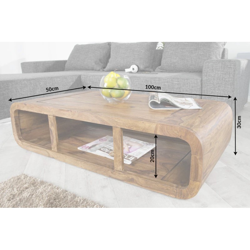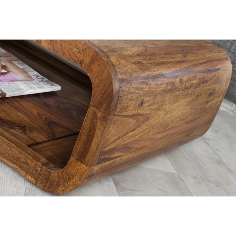 La table basse CURVIA séduit par son design tout en courbes et son aspect monobloc élégant. Conçue en bois de Sheesham verni, elle apporte une touche chaleureuse et naturelle à votre salon tout en offrant une esthétique contemporaine unique.
