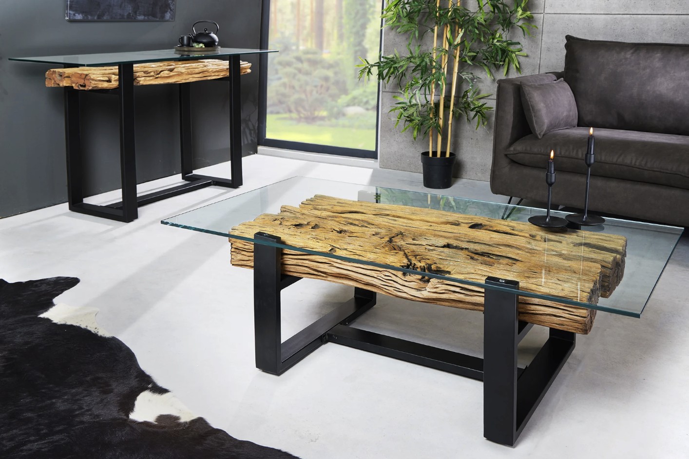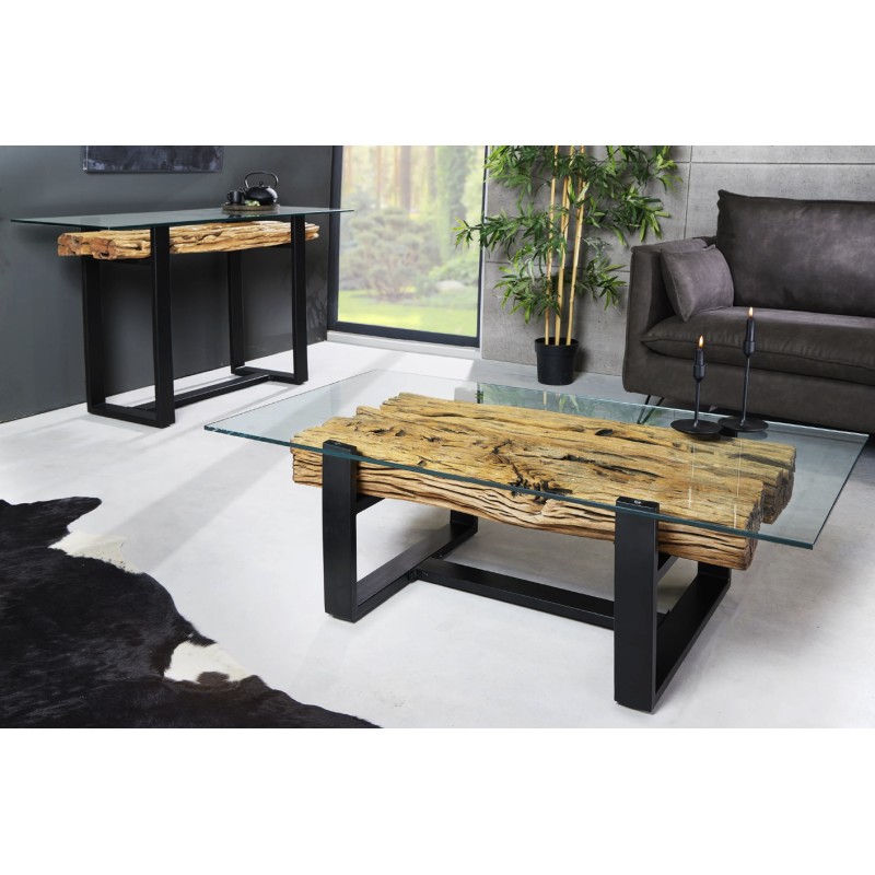 La table basse RAFTA incarne parfaitement l’esprit industriel avec une combinaison élégante de bois de teck recyclé, de verre trempé et de métal noir mat. Son design robuste et naturel en fait une pièce forte pour sublimer votre salon.