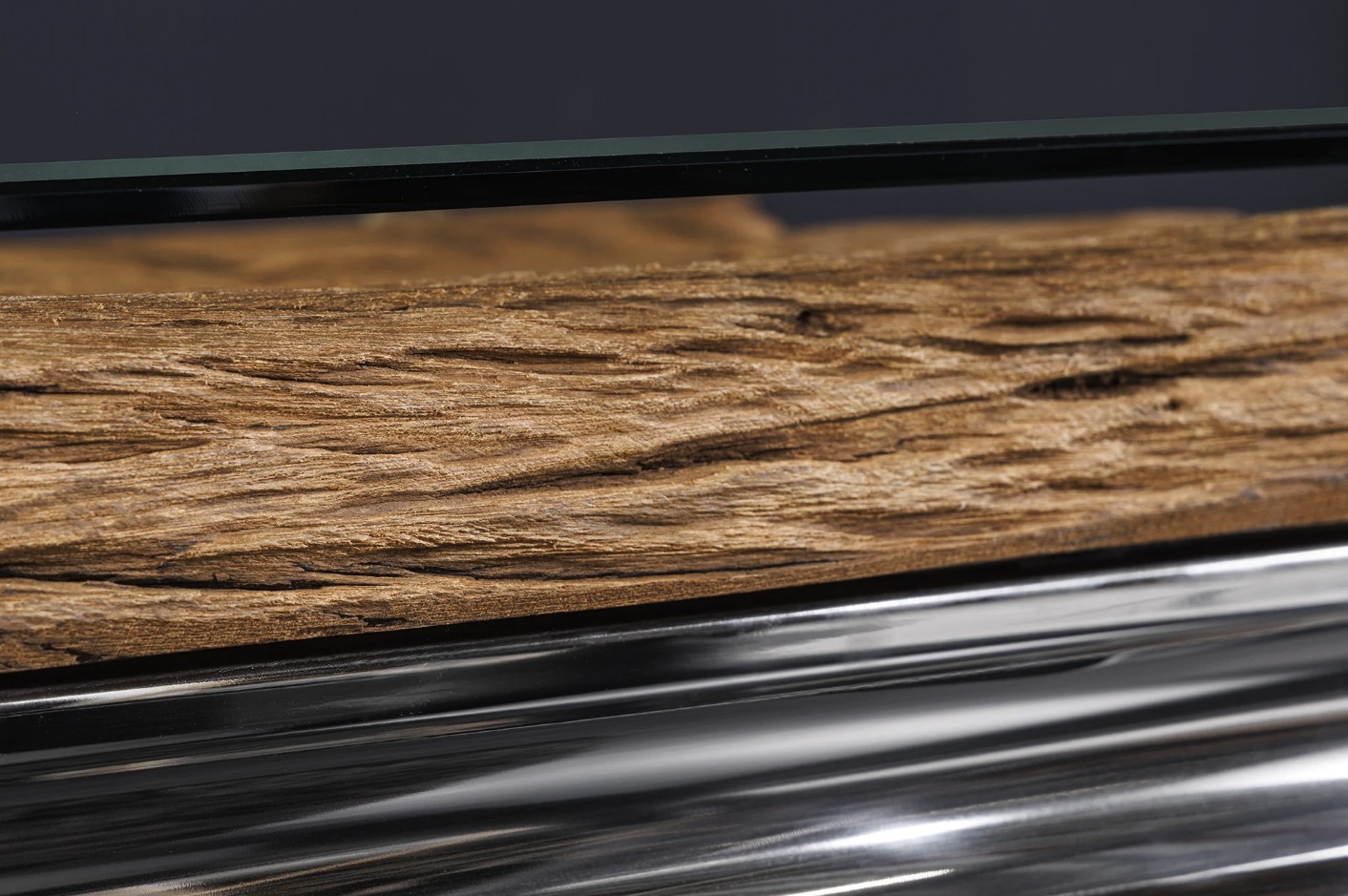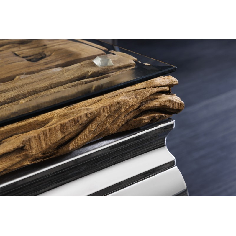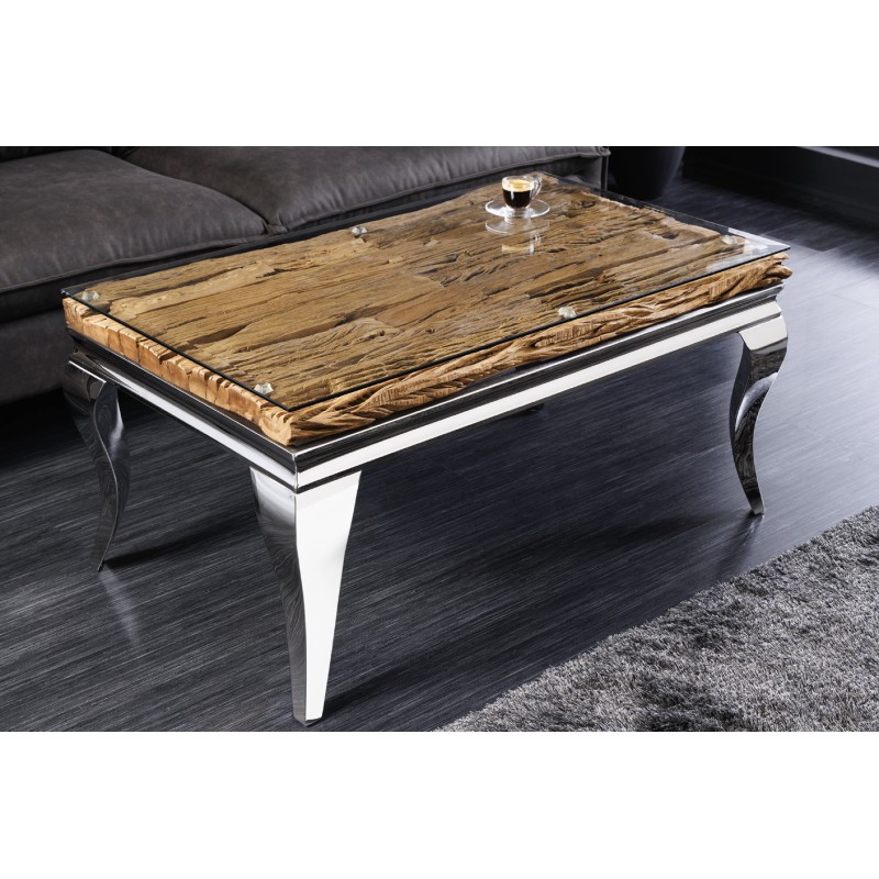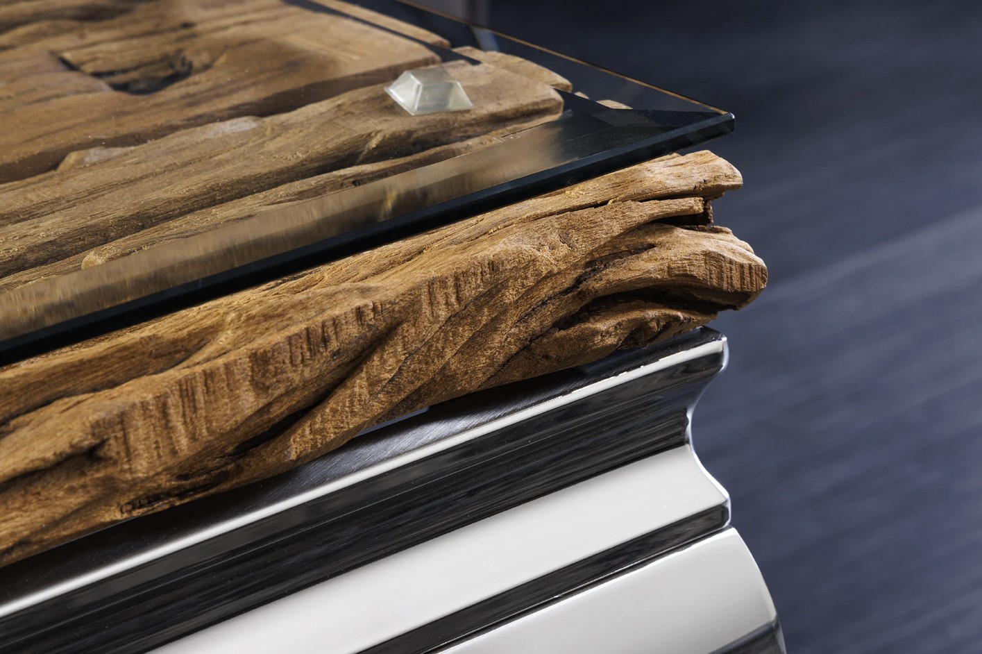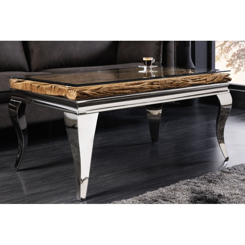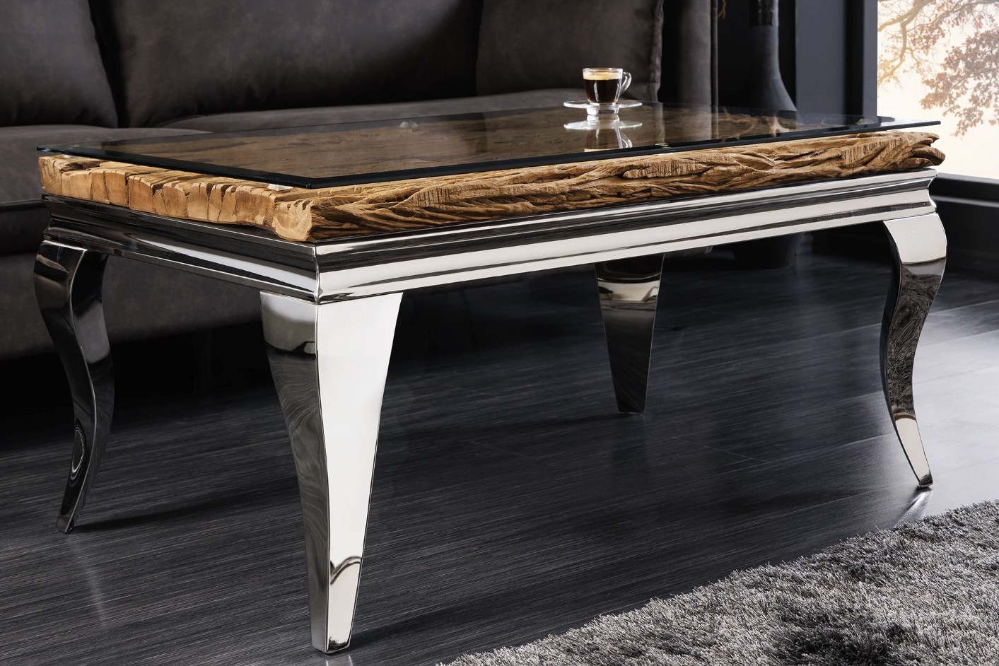 Apportez une touche d’élégance unique à votre intérieur avec la table basse VELENA. Son design associe harmonieusement le bois de teck, le verre trempé et des pieds chromés en acier inoxydable pour un rendu à la fois sophistiqué et contemporain.
