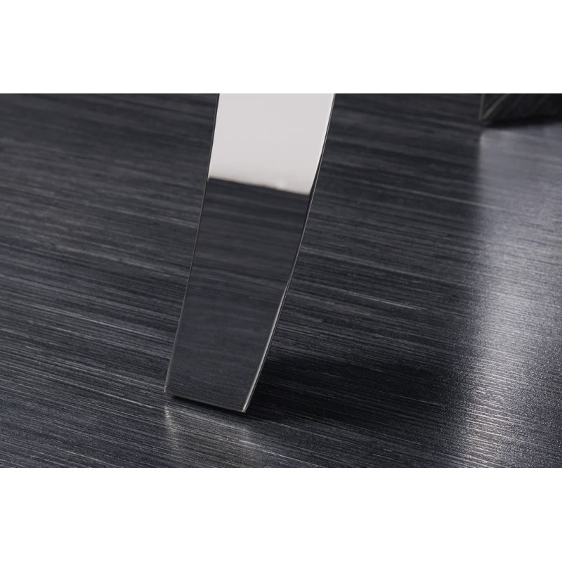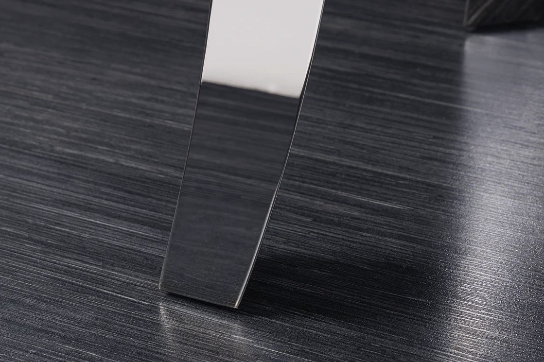Les pieds chromés argentés en acier inoxydable adoptent une forme élégamment courbée, inspirée du style baroque, tout en conservant une finition moderne et brillante. Avec leurs dimensions de 2,5-11 x 38 x 2,5-11 cm et une distance de 83 cm entre les pieds, ils assurent stabilité et esthétisme.
