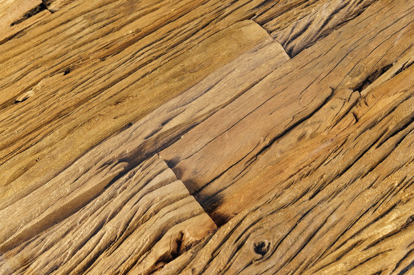 La surface de ce meuble attire immédiatement l'attention de tous ! Le bois massif non traité a été assemblé à partir de nombreux éléments en bois différents. Pour un look authentique, vous trouverez des morceaux de bois incrustés et une surface très individuelle et irrégulière sur chaque meuble de cette série. La couleur du bois peut également varier. Découvrez une pièce unique et magnifique, avec sa propre histoire !