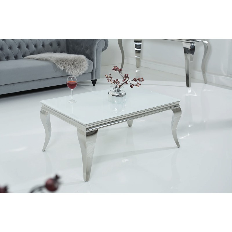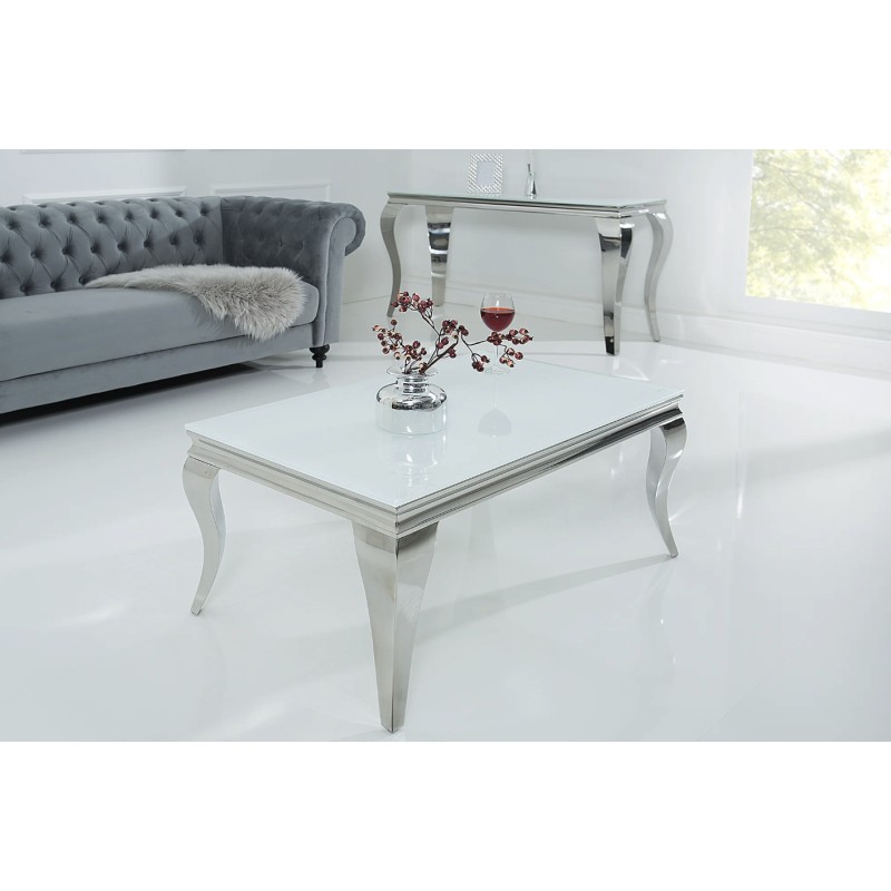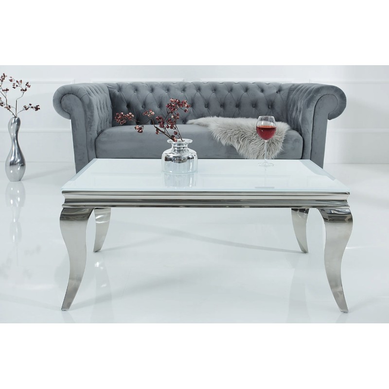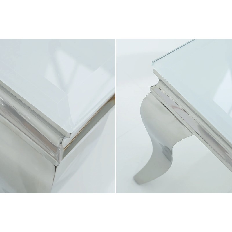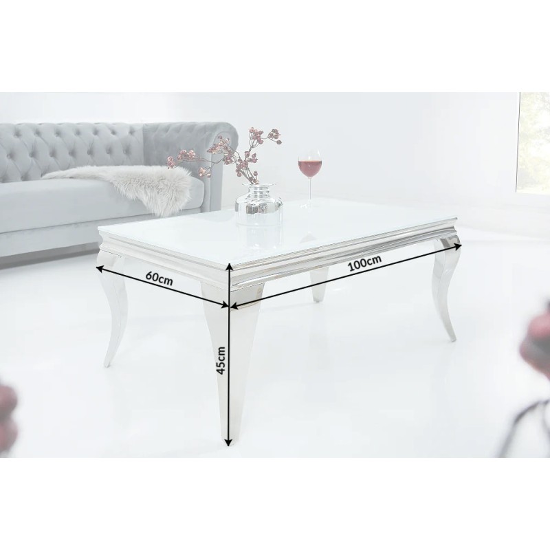 Apportez une touche de raffinement à votre salon avec la table basse VELENA. Entièrement conçue en acier inoxydable avec un plateau en verre trempé opaque, elle séduit par son allure chic et son design inspiré du style baroque revisité.