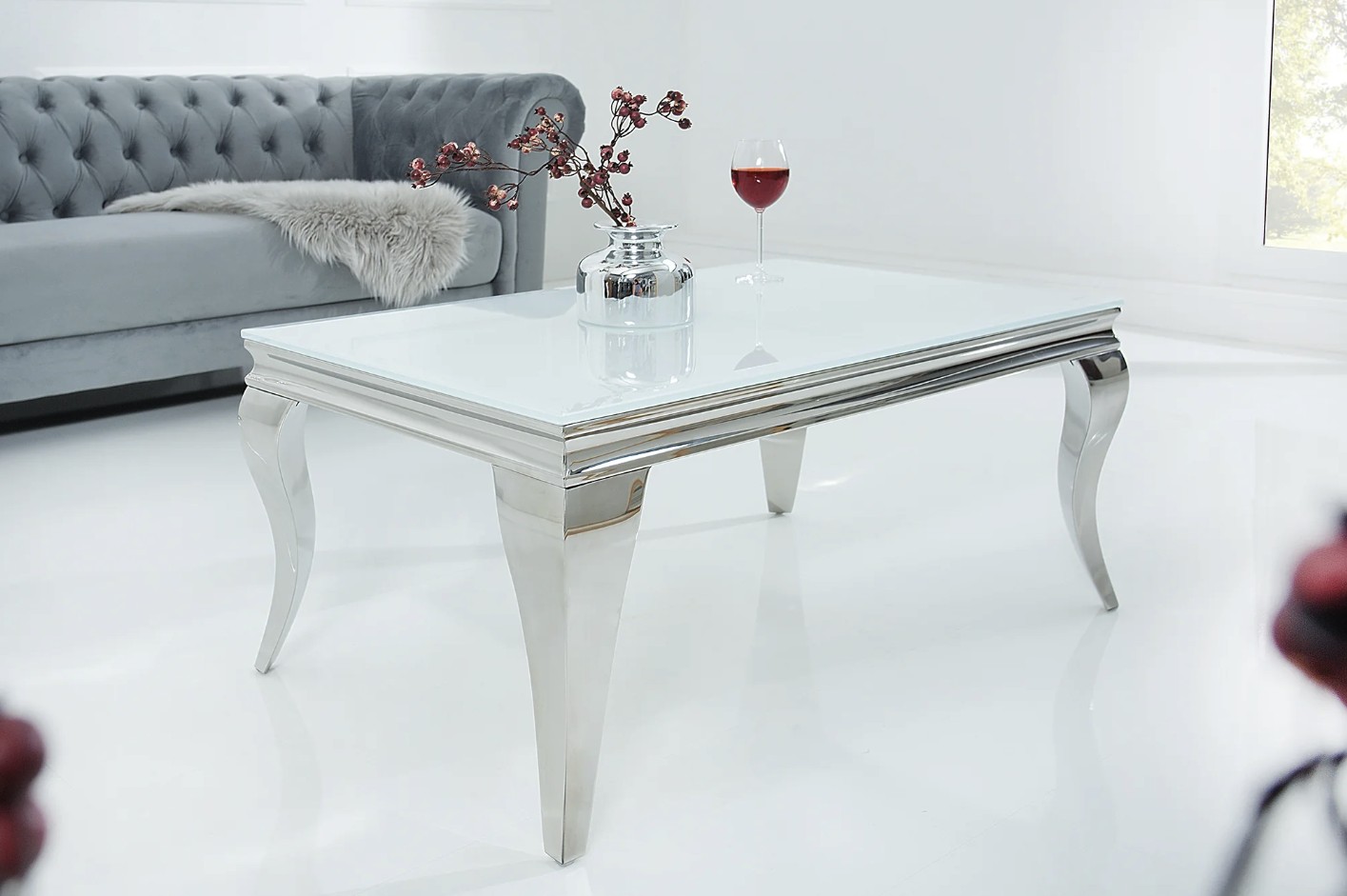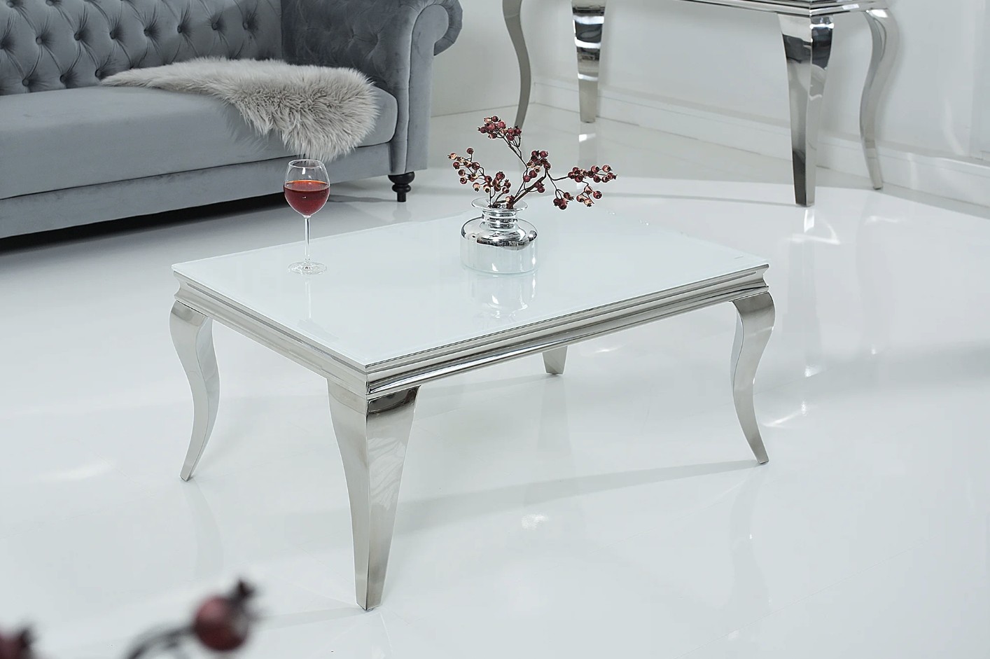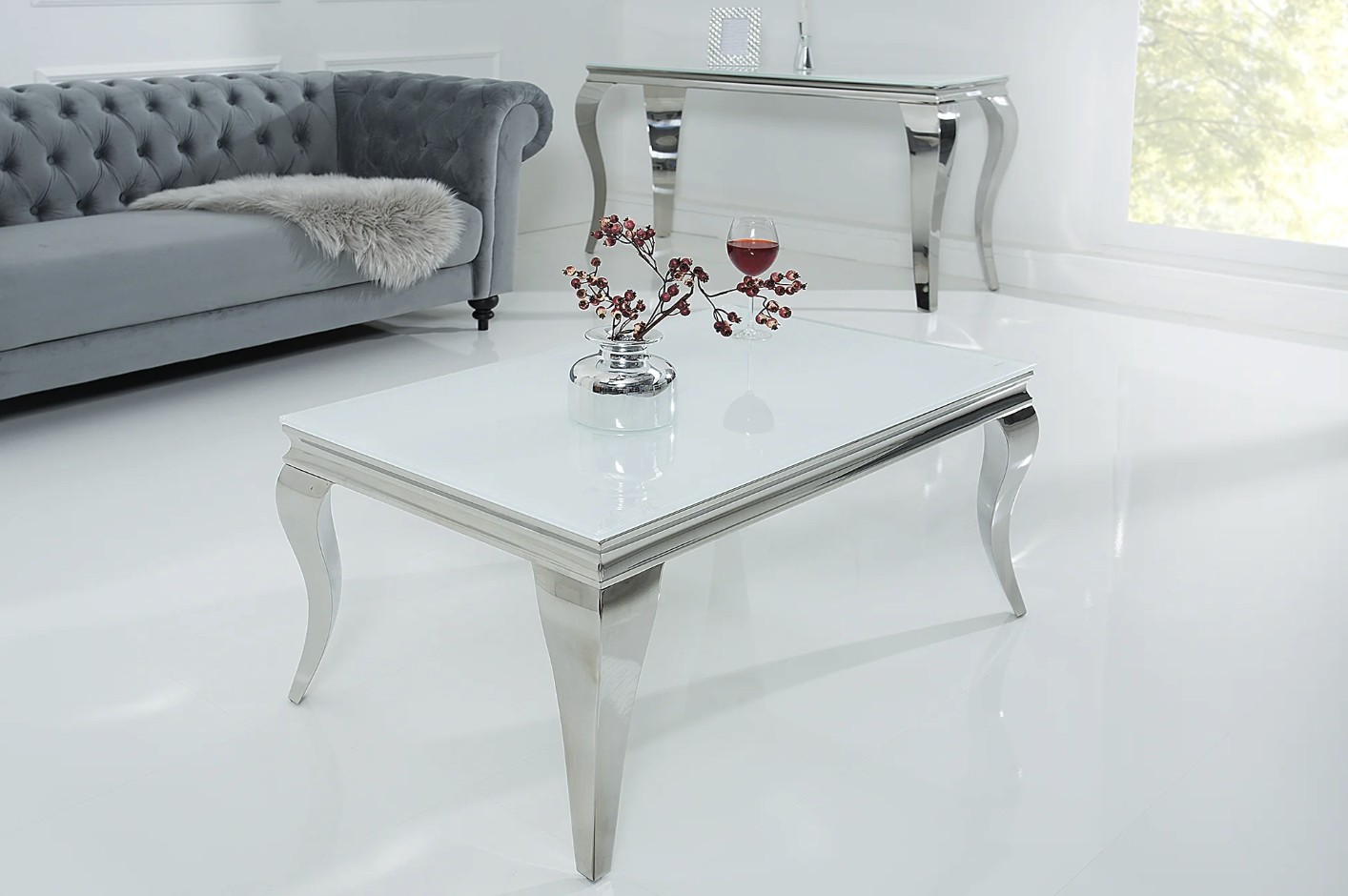 Apportez une touche de raffinement à votre salon avec la table basse VELENA. Entièrement conçue en acier inoxydable avec un plateau en verre trempé opaque, elle séduit par son allure chic et son design inspiré du style baroque revisité.
