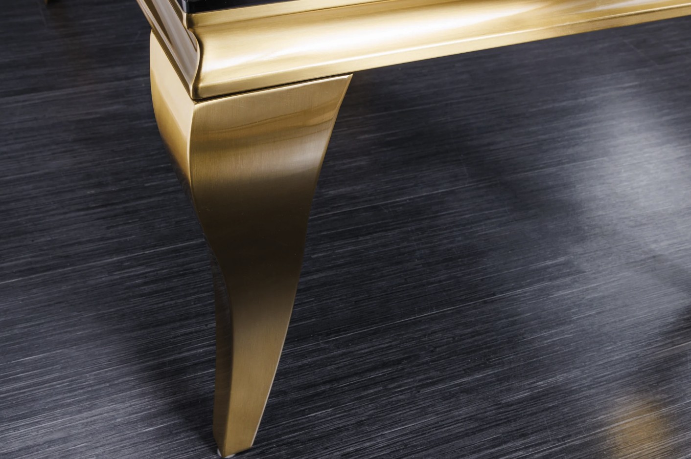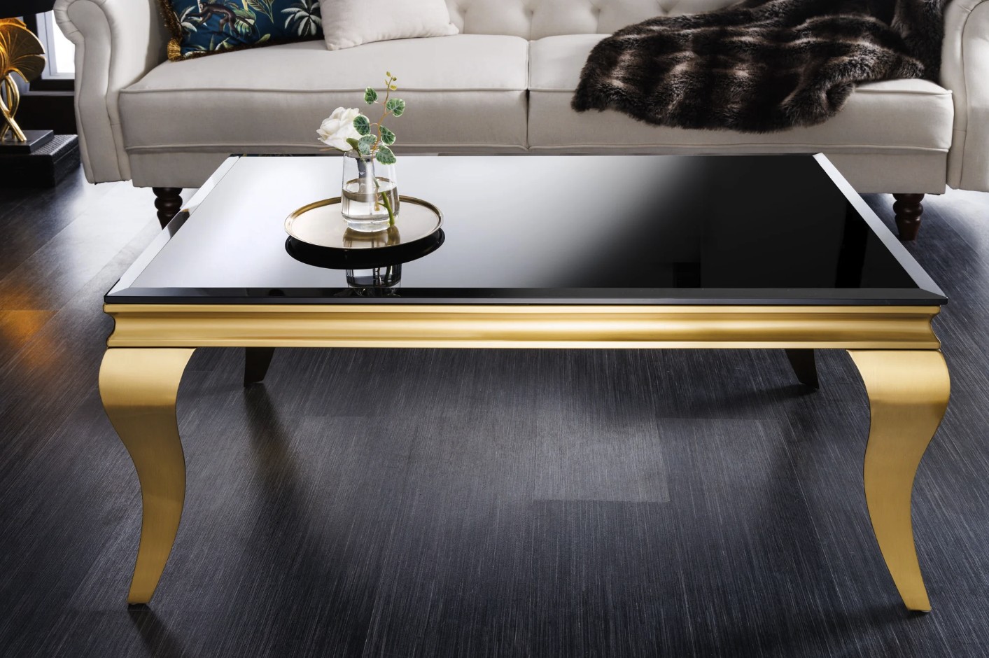 La table basse VELENA incarne parfaitement l’élégance du style baroque revisité avec une touche contemporaine. Son association de pieds galbés dorés et d’un plateau noir profond crée un contraste sophistiqué qui attire immédiatement le regard.