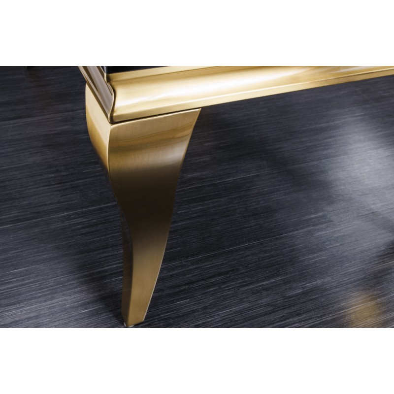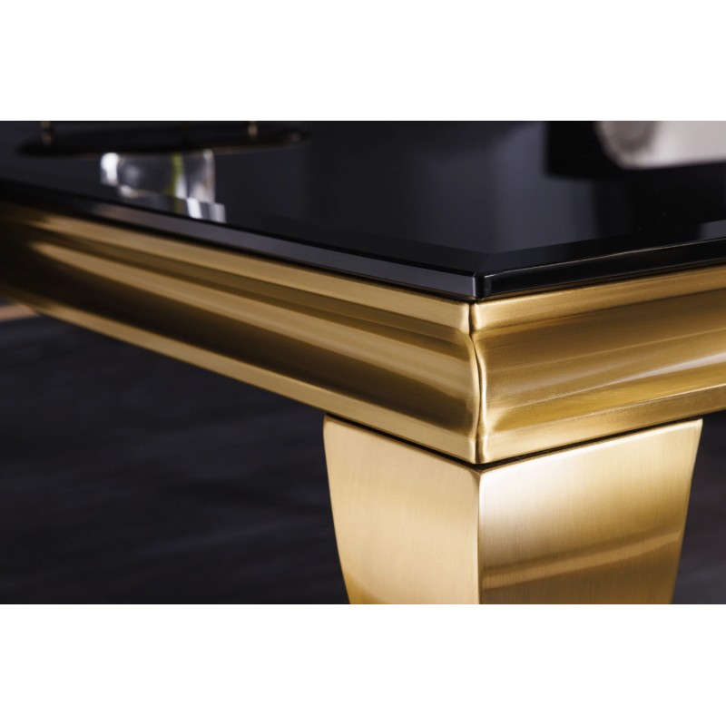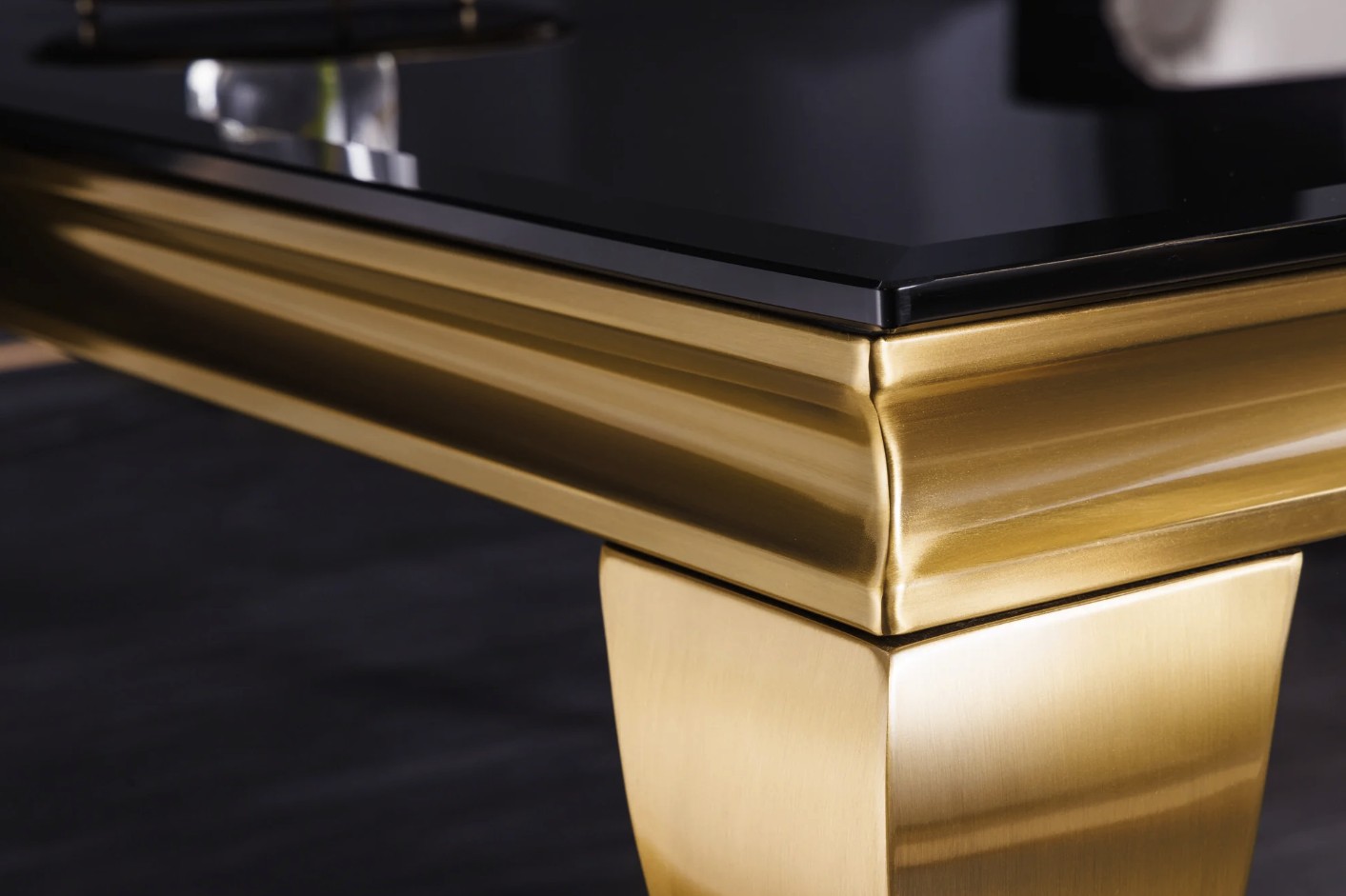 La structure en acier inoxydable finition dorée reflète subtilement la lumière et apporte une chaleur visuelle unique. Ce coloris doré accentue le côté prestigieux et décoratif de la table.