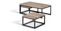 La table basse HELLINGTON est composée de 3 tables de style industriel dans des formats différents. Les petites tables carrées ont une hauteur de 33 cm, une longueur de 54 cm et une largeur de 54 cm. La grande table mesure 40 cm de haut, 120 cm de long et 60 cm de large.