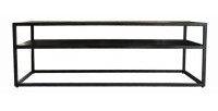 - CARACTÉRISTIQUES : Table basse rectangulaire avec rangement sous le plateau principal, structure métal noir.