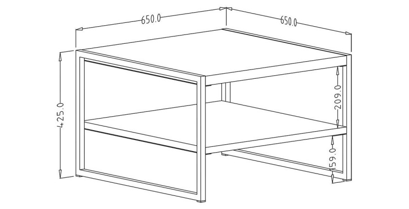 Avec ses dimensions L65 × H42,5 × P65 cm, cette table basse carrée s’intègre parfaitement dans les petits et grands salons. Elle dispose d’un plateau intermédiaire pratique pour ranger vos magazines, télécommandes ou accessoires déco.
