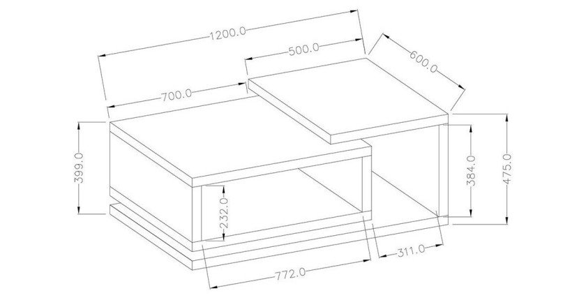 | Dimensions de la table basse | L120 x H40 x l60 |