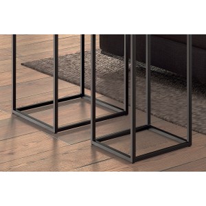 - CARACTÉRISTIQUES : Tables d'appoint design en bois massif. Structure en métal noir.