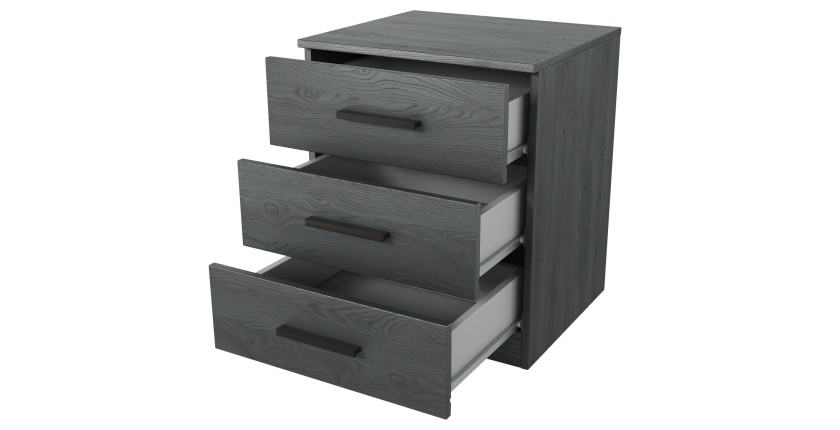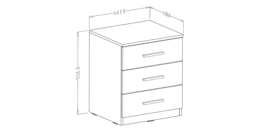 Avec ses 3 tiroirs spacieux, cette table de chevet vous permet de ranger facilement vos affaires du quotidien. Ses dimensions de 46,3 × 41 × 55,6 cm en font un meuble compact mais très pratique.