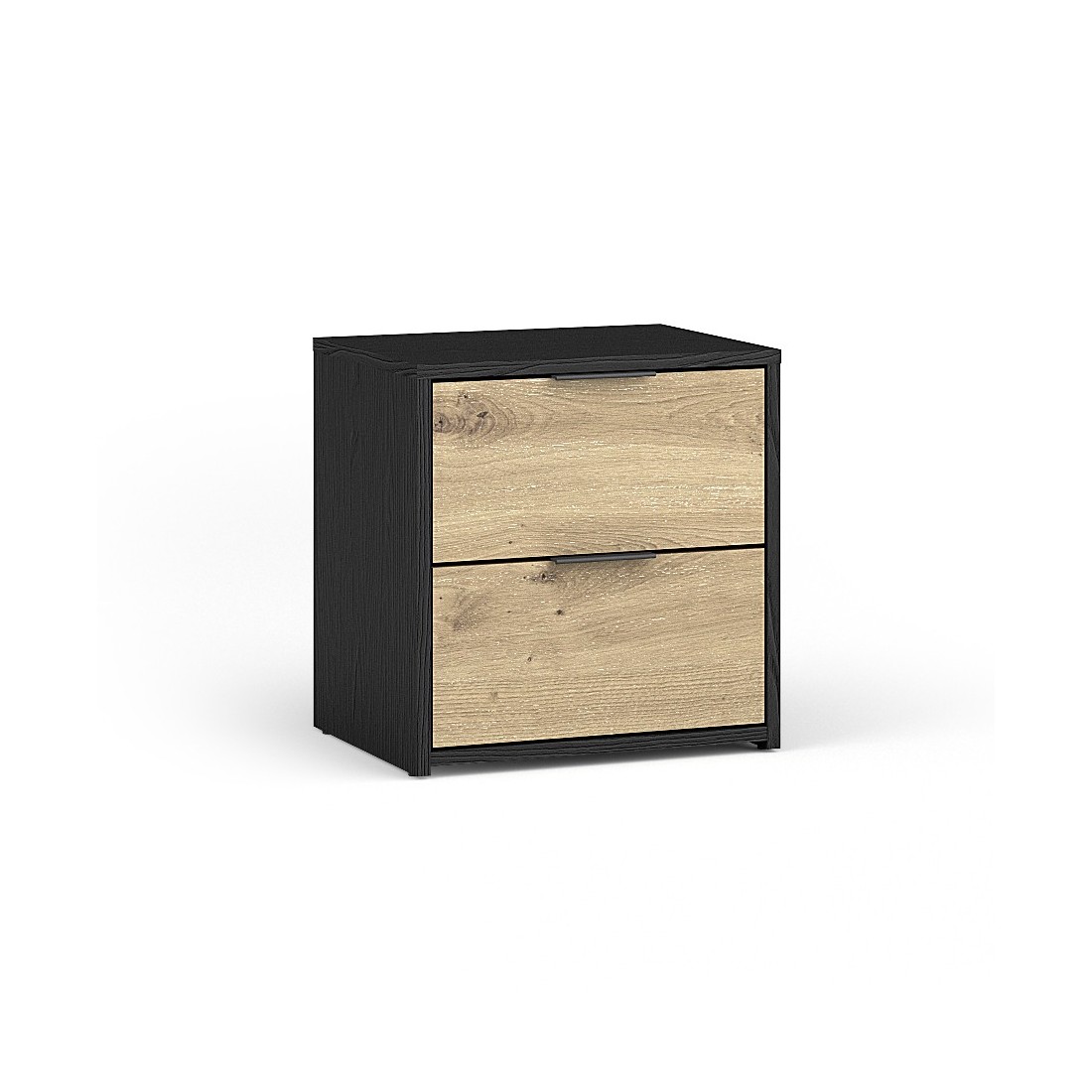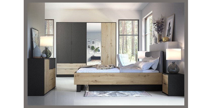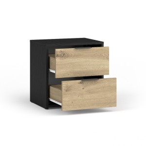 Complétez l'aménagement de votre chambre avec le lot de deux tables de chevet MELODY. Conçues pour s'adapter aux intérieurs modernes, ces tables de chevet allient élégance et fonctionnalité avec leur finition en noir graphite et chêne clair. Avec leurs 2 tiroirs spacieux, elles offrent un espace de rangement pratique pour garder vos objets essentiels à portée de main.