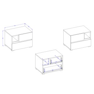 Fabriquée en panneaux de particules de première qualité, elle est conçue pour durer. Les tiroirs sont montés sur glissières à roulettes pour une ouverture fluide, et les poignées sont directement intégrées dans la façade pour un design épuré. Elle repose sur 4 pieds noirs discrets qui assurent stabilité et légèreté visuelle.